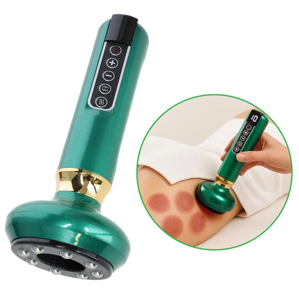 Noul aparat electric de masaj cu ventuze combină ventuzele tradiționale, masajul cu răzuire gua sha și terapia termică cu lumină infraroșie pentru a crește fluxul sanguin către piele, a descompune țesutul adipos și a fermiza în mod natural pielea.