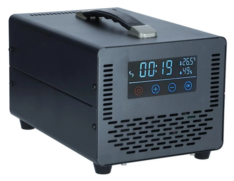 Generatorul de ozon de 20 g/h este un dispozitiv puternic, cu o producție de 20.000 mg de ozon pe oră, potrivit pentru dezinfecția zilnică a apartamentelor, birourilor și spațiilor mai mici. Elimină eficient virușii, bacteriile, mucegaiul și mirosurile neplăcute și acoperă încăperi cu o suprafață de până la 200 m² . Modelul are un ecran tactil digital și un cronometru încorporat. Datorită construcției robuste și a mânerului practic, dispozitivul este ușor de manevrat și îl puteți transporta cu ușurință.