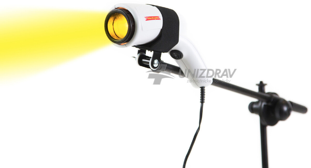 Filtrul galben este o parte standard a lămpilor de tratament MediLight.