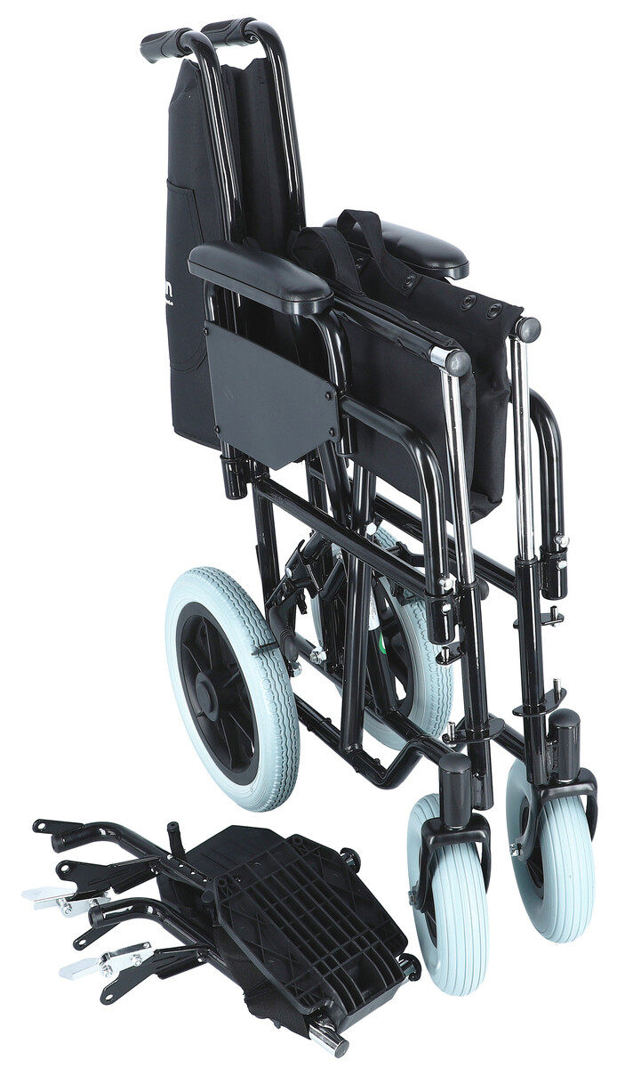 Suporturile pentru picioare sunt pliabile, detașabile și reglabile pe înălțime. Pentru un transfer mai ușor, picioarele se pliază în sus.