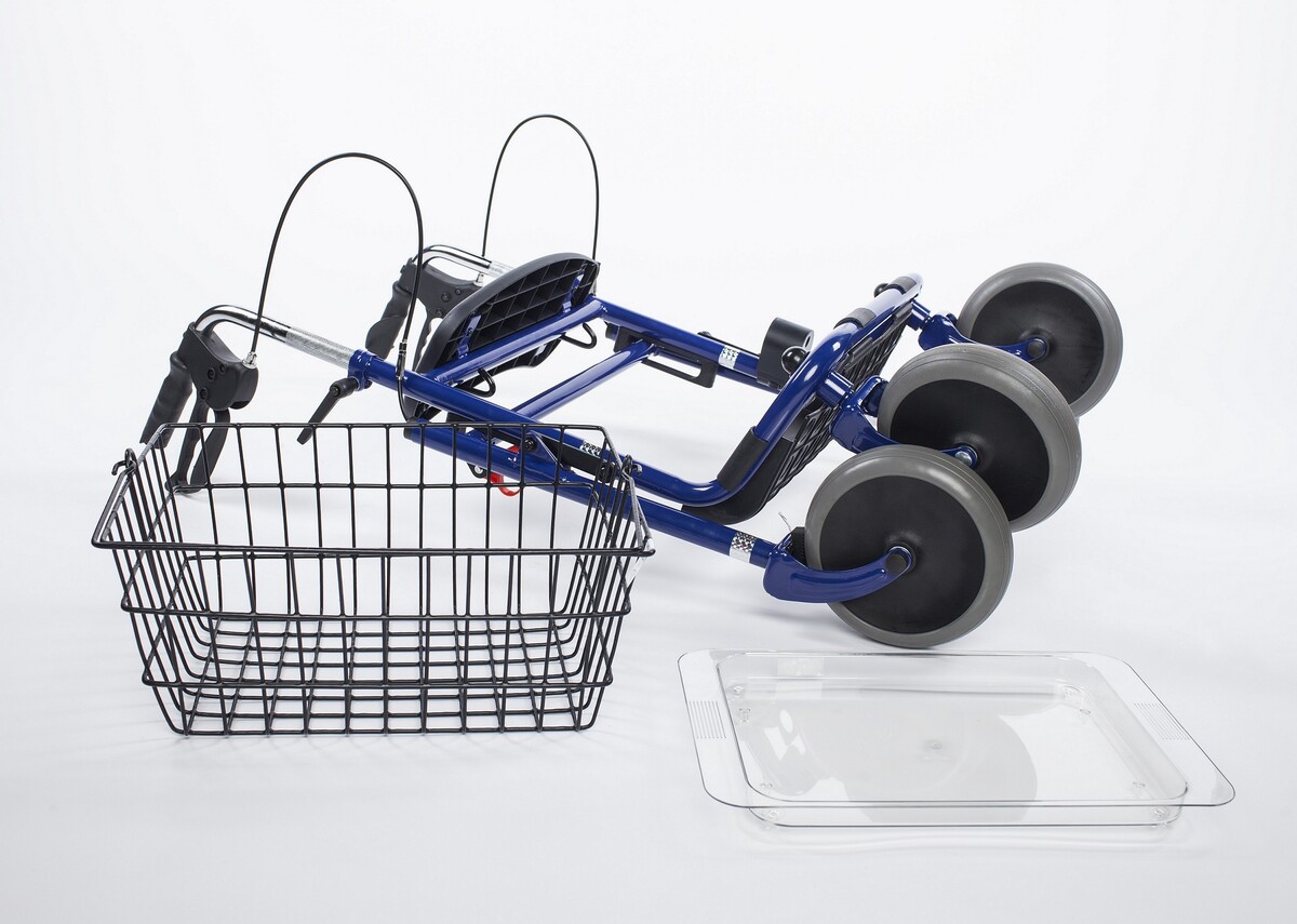 Include un coș pentru depozitarea și transportul în siguranță a lucrurilor. Există o tavă anti-alunecare detașabilă în partea superioară. Este fabricat din oțel și poate fi pliat și transportat cu ușurință.