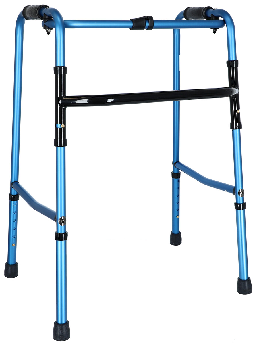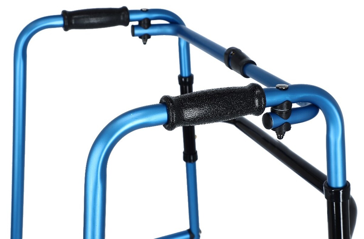 Cadru de mers pliabil crește stabilitatea în timpul mersului și adaugă încredere în mișcare. Este reglabil pe înălțime ceea ce permite confortul pacientului. Utilizați numai pe o suprafață plană și solidă. Asigurați-vă că toate șuruburile sunt strânse înainte de utilizare.