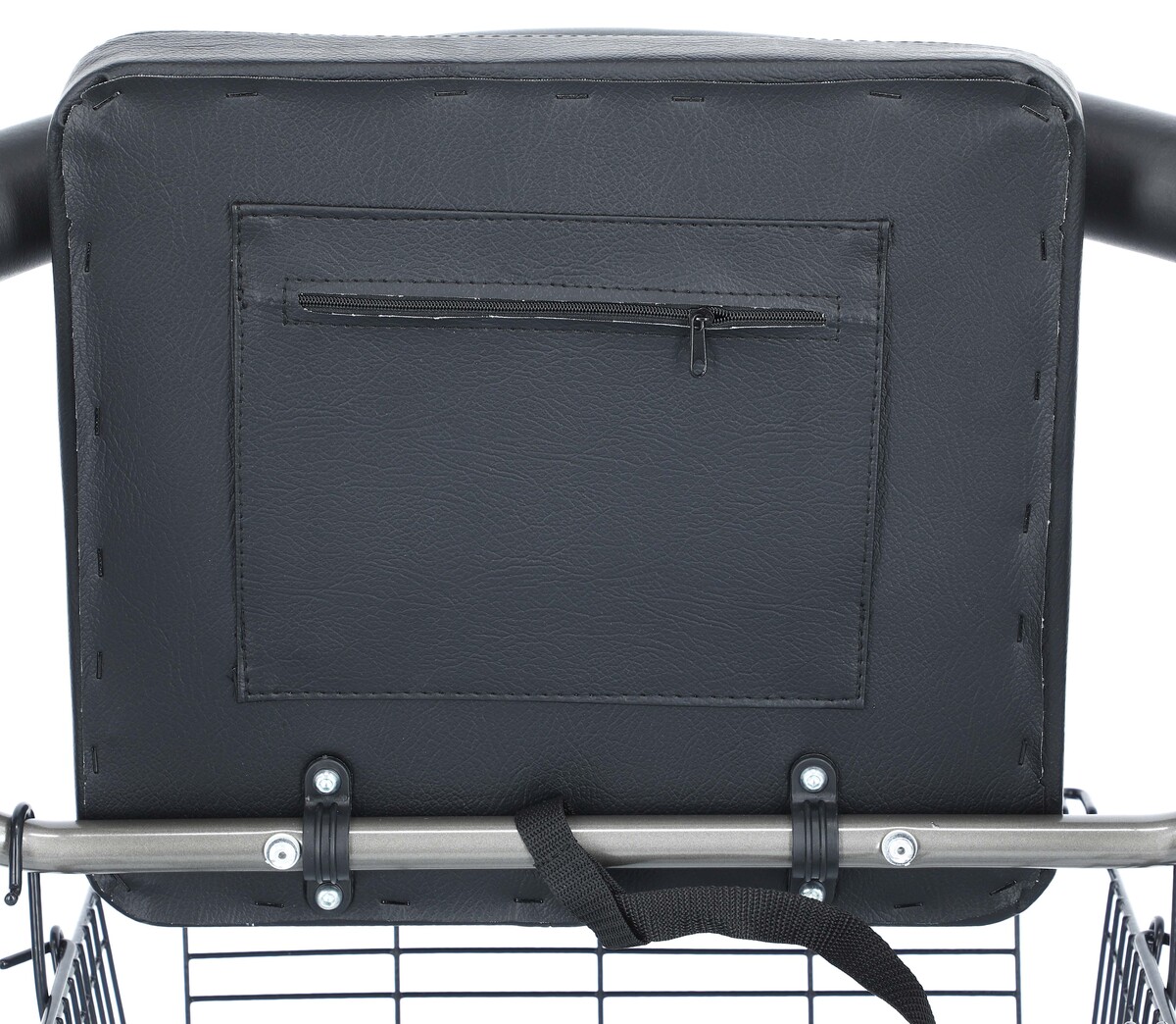 Un rolator spațios cu spătar permite o așezare confortabilă dacă utilizatorul rolatorului trebuie să se odihnească. Pe partea dreaptă apremergătorului se află un suport din două părți la care poți atașa o cârjă și un băț.