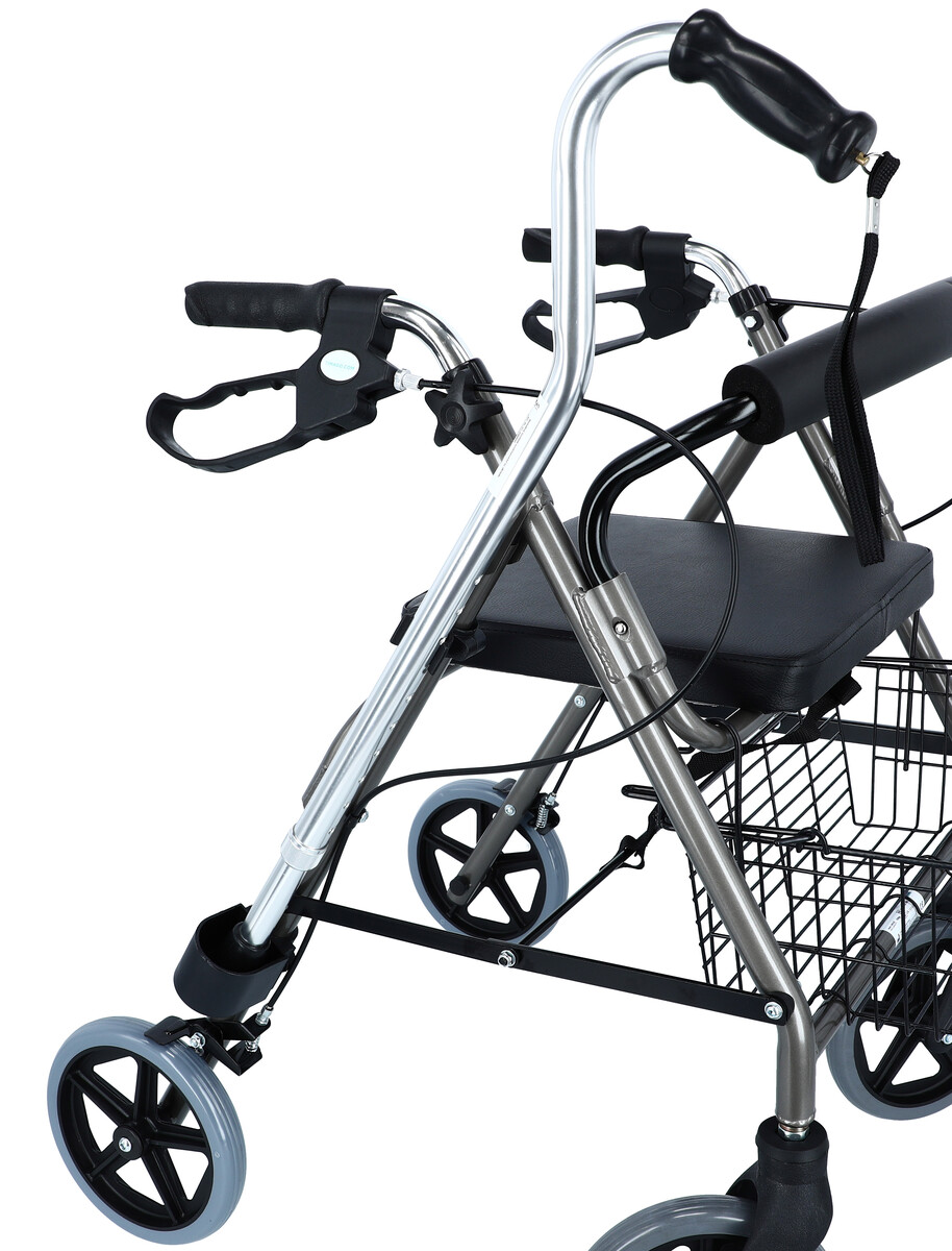 Un rolator confortabil, sigur și ușor servește ca ajutor de reabilitare pentru a facilita mișcarea. Este echipat cu mânere cu formă ergonomică pe care sunt ușor de acționat frâne. Rolatorul cu patru roți are 2 tipuri de frâne: trăgând de mâner acționați ușor frânele iar prin apăsarea frânei în jos activați frâna de parcare care asigură că vehiculul cu patru roți este frânat complet făcându-l pregătit pentru a te așeza pe el. Pentru confortul utilizatorului frânele pot fi reglate în diferite poziții.