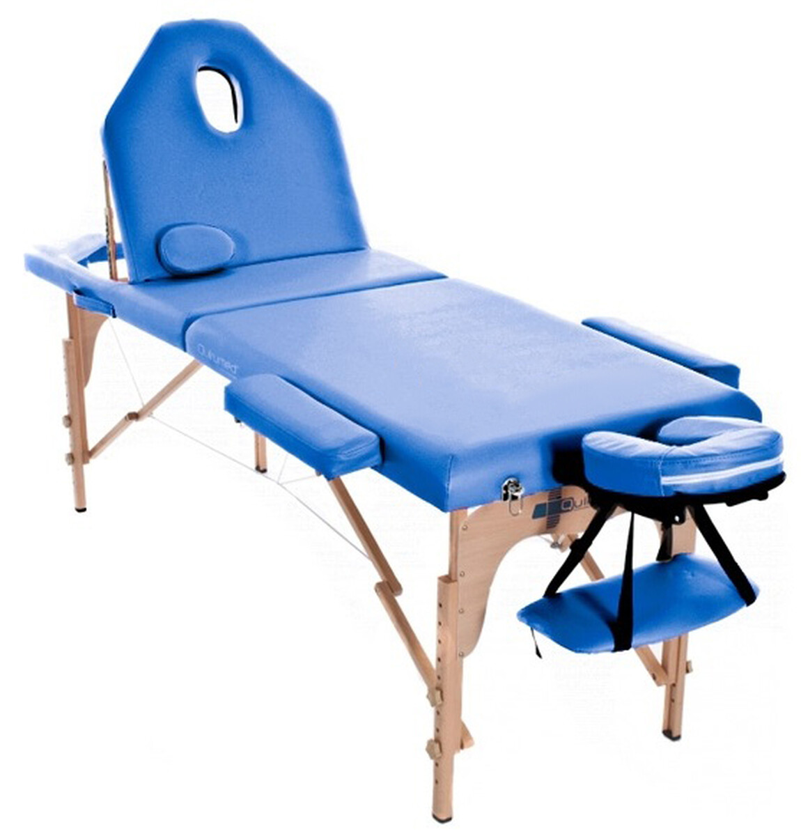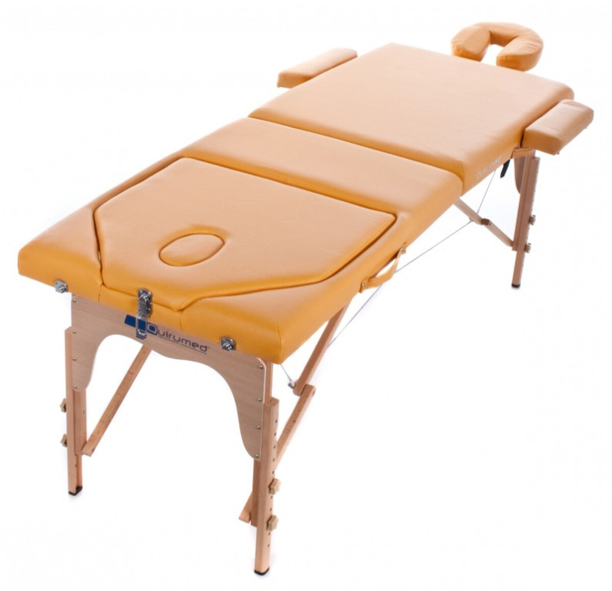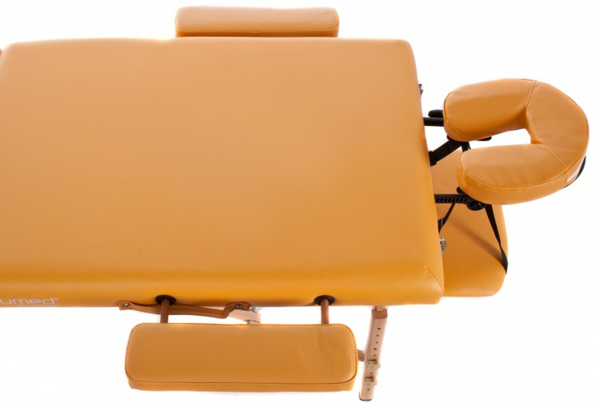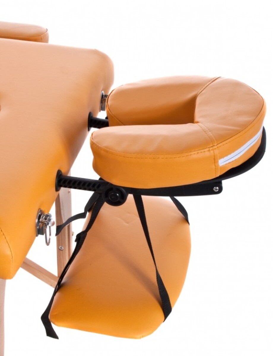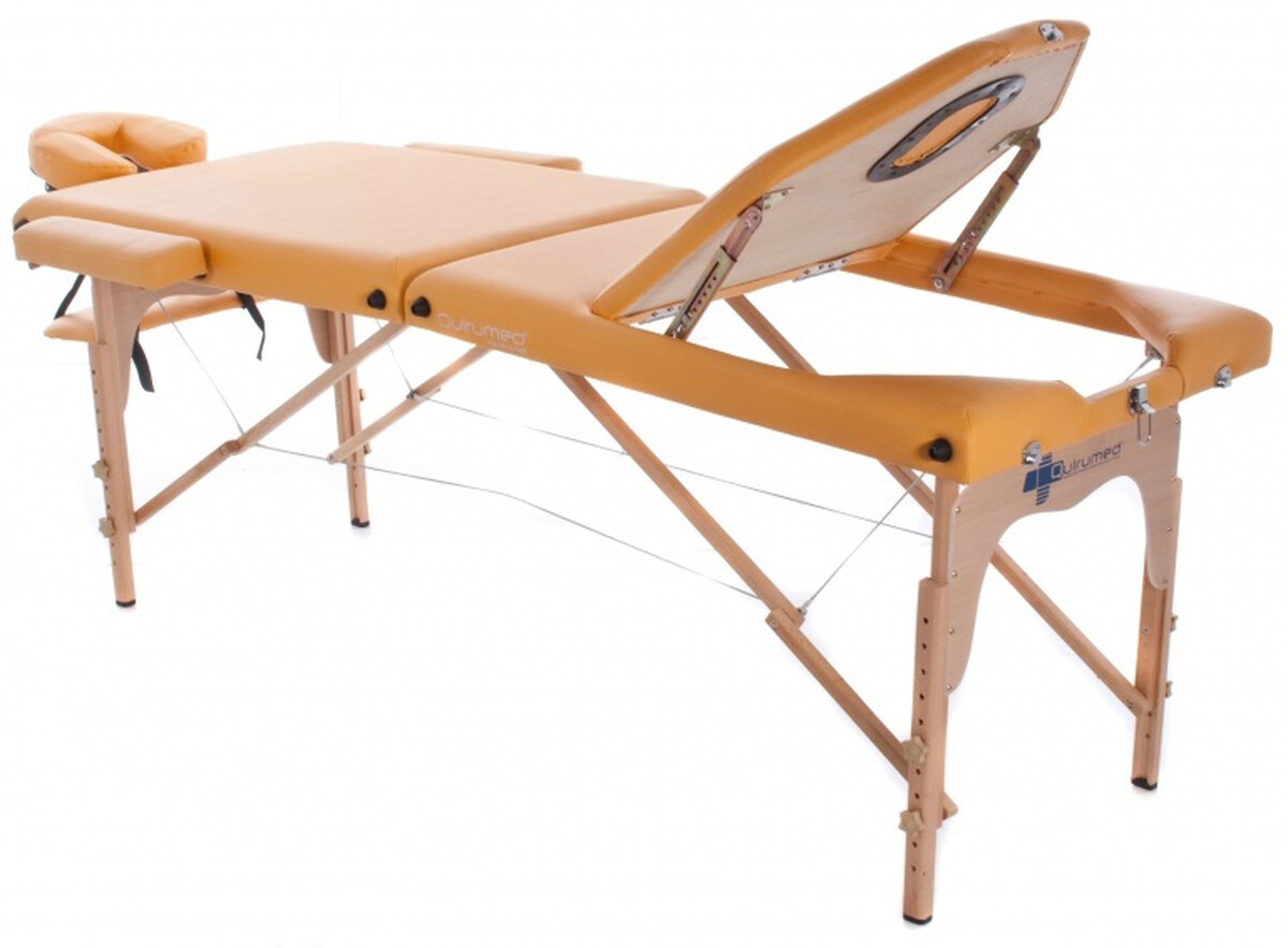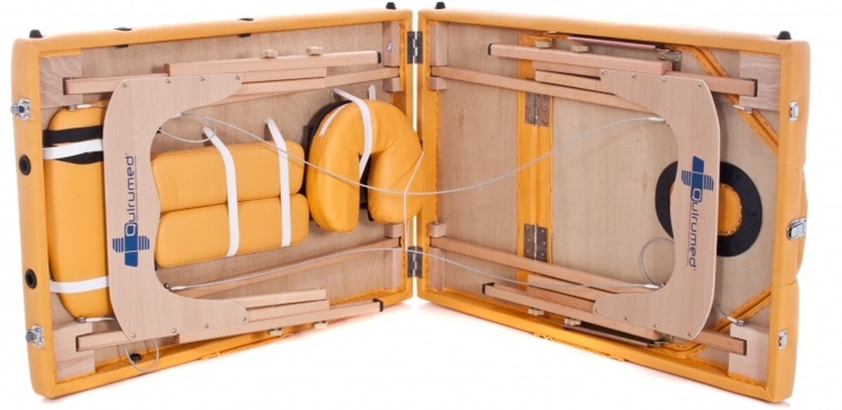 Masă de masaj din lemn este o masa portabila din lemn rezistent, destinata masorilor, kinetoterapeuților, lucrătorilor din industria wellness sau a frumuseții. Sezlongul din lemn are doua deschideri pentru fata cu spatar rabatabil. În ciuda faptului că patul de masaj este pliabil, acest lucru nu îi afectează stabilitatea.