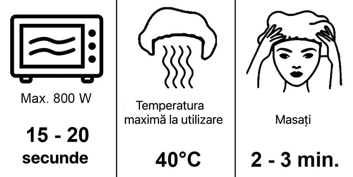 Casca trebuie încălzită în cuptorul cu microunde timp de 15-20 de secunde sau poate fi la temperatura camerei. Conține șampon și balsam. După aplicarea pe cap doar masează părul prin mască timp de 2-3 minute și apoi lasă-l să se usuce. Nu este nevoie să clătiți părul. Casca este pentru 1 utilizare.