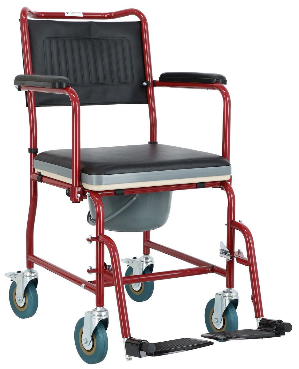 Căruciorul de toaletă pe roți este destinat persoanelor cu mobilitate redusă. Este alcătuit dintr-un cadru durabil din oțel. Spătarul confortabil este durabil și confortabil, ușor de curățat. Cotiere și suporturi de picioare pliabile permit transferul mai ușor al pacientului.