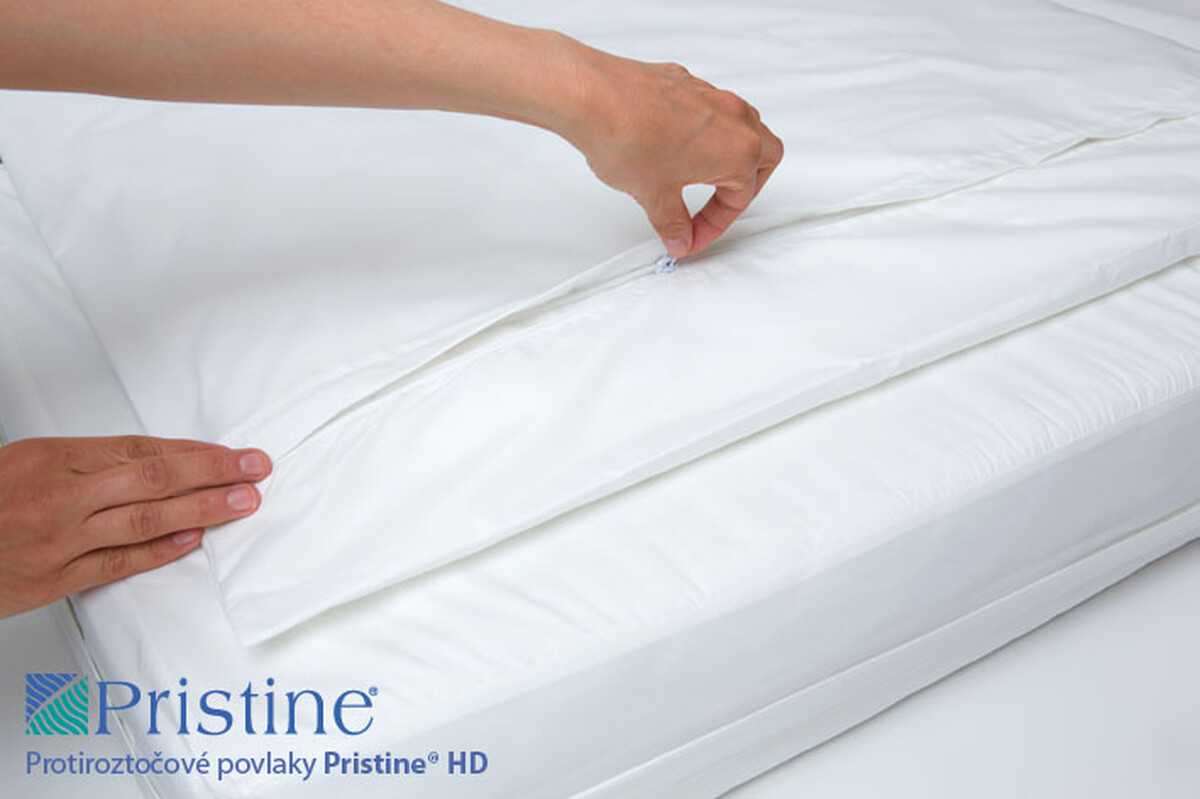 Husele pentru perne, pilote și husele de saltea Pristine® sunt fabricate din țesătură Pristine Calendered care este cel mai dens tip de țesătură Pristine® disponibil pe piață. Prin urmare alergenii nu ajung la pielea umană sau în căile respiratorii în timpul somnului ceea ce previne dificultățile de respirație, atacurile de astm sau mâncărimea pielii. După aplicarea lenjeriei de pat și a huselor, alergenii rămân în siguranță închiși în așternut, saltea și astfel este împiedicat contactul uman.