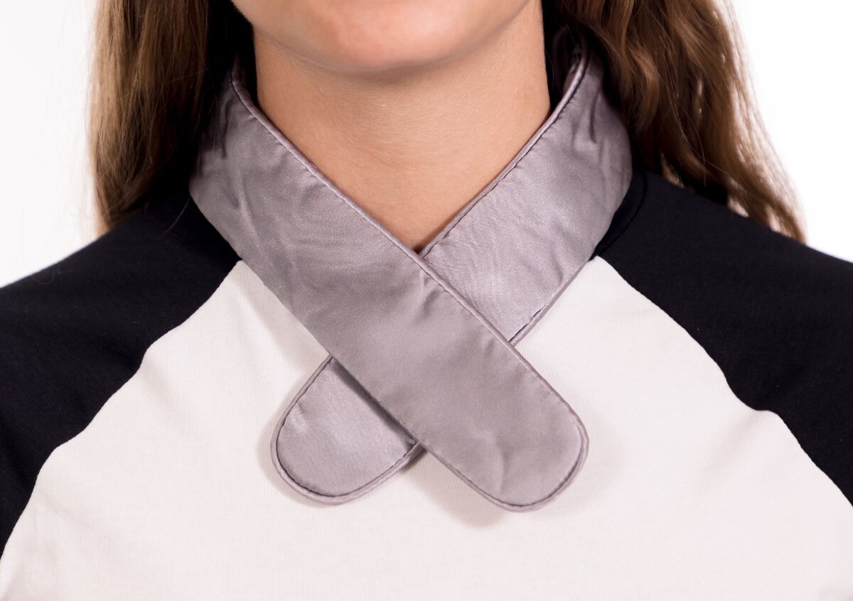Guler de încălzire din mătase cu sursă de alimentare USB și tehnologie inovatoare de încălzire cu grafen pentru a relaxa mușchii gâtului rigid.
