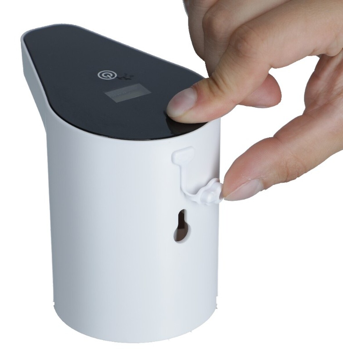 Pe partea superioară a dozatorului există un buton multifuncțional pentru pornirea și oprirea dispozitivului și setarea intensității dozei. Există 2 niveluri de dozare disponibile după cum este necesar. Indicatorul LED se aprinde în albastru când dispozitivul emite dezinfecție și se aprinde și când este oprit.