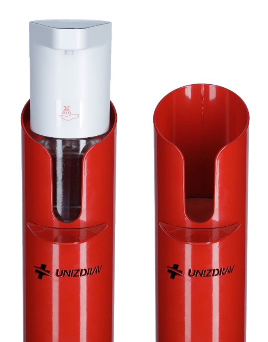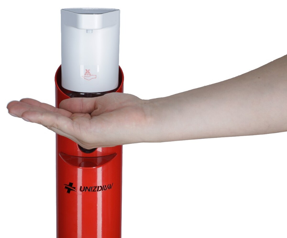 Dozator automat pentru dezinfecție cu suport UNIZDRAV, roșu