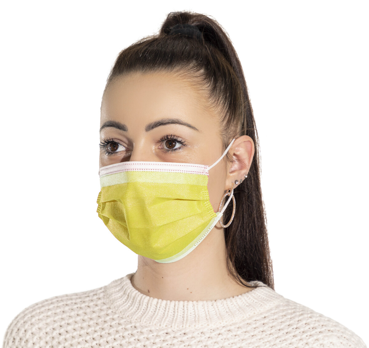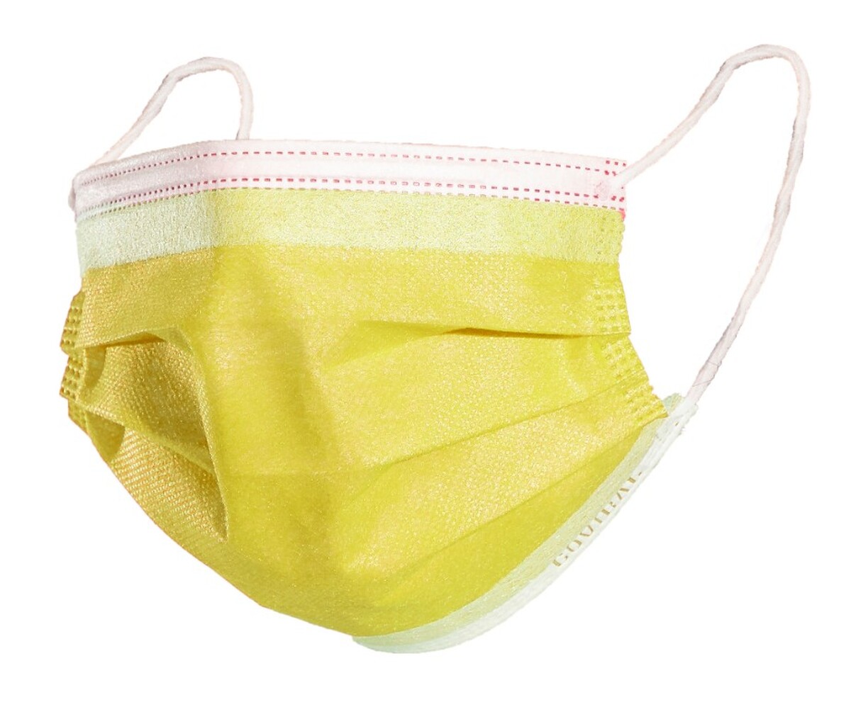Mască de față cu bandă de cauciuc - galben chirurgical, 50 buc
