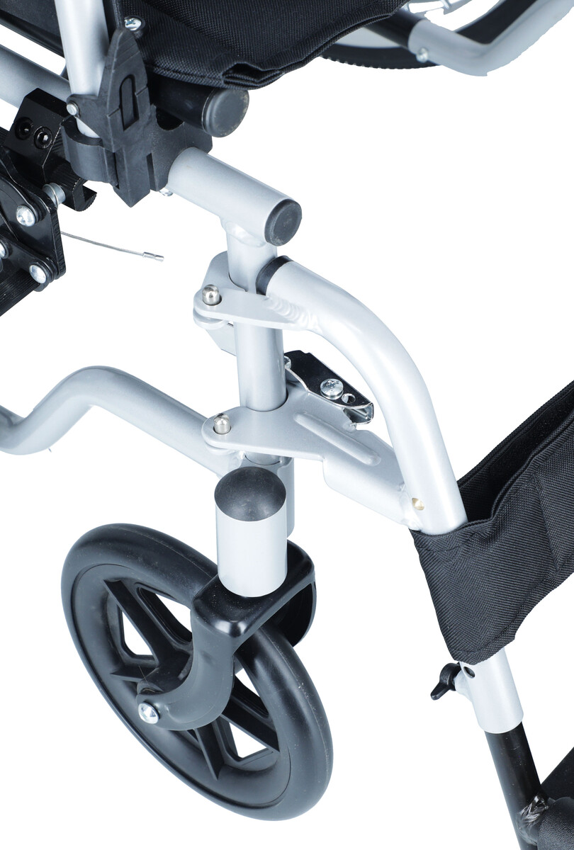 Scaunul cu rotile este extrem de ușor, cântărește doar 13,8 kg și poate fi pliat și transportat cu ușurință în mașină.