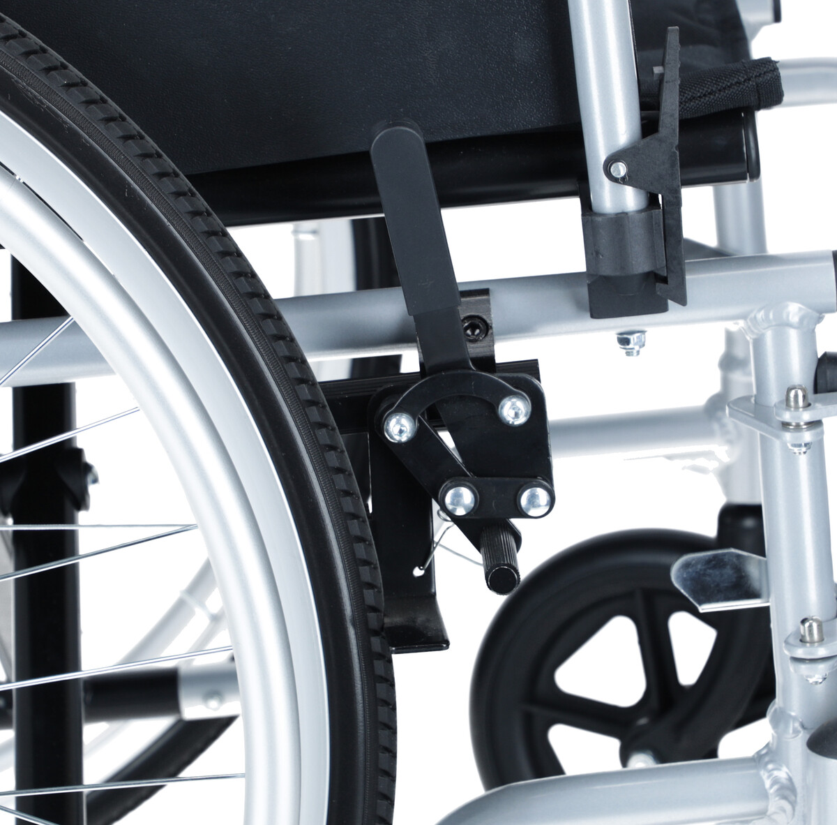 Scaunul cu rotile mecanic ușor este fabricat din aluminiu și este destinat persoanelor care au dificultăți de mișcare independentă și persoanelor cu dizabilități și restricții de mobilitate. Căruciorul este echipat cu frâne pentru însoțitor, care poate fi folosit de însoțitorul pacientului. Pe roțile mari există frâne de presiune, care pot fi folosite de pacient dacă acesta este neînsoțit și este obligat să oprească scaunul cu rotile. Roțile din față și din spate sunt fără cameră, ceea ce facilitează întreținerea acestora.