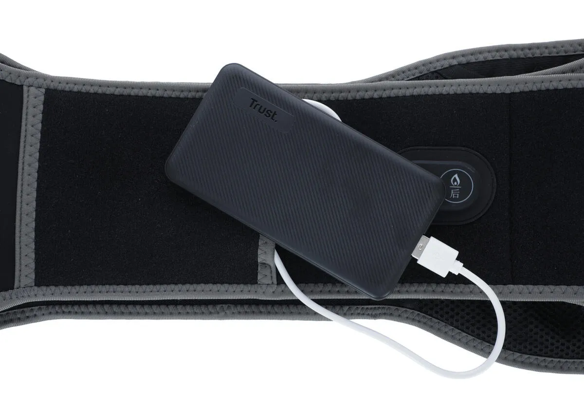 Centura este echipată cu un buzunar la îndemână pentru un power bank (până la dimensiunile 13,5 x 15,5 x 1,5 cm) și poate fi ascuns sub orice tip de îmbrăcăminte. Cu acest tip de sursă de alimentare o puteți folosi practic oriunde fie în timpul serviciului, la plimbare pe vreme rece, la schi, sau doar în confortul casei dvs. și în acest caz cu conectare la un încărcător obișnuit de telefon mobil sau la un port USB de pe laptop sau PC.