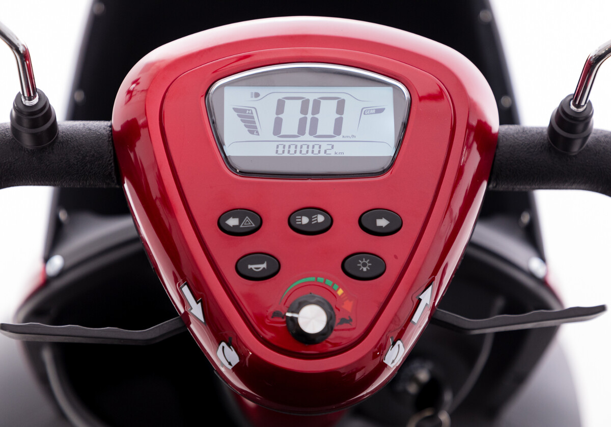 Scuterul electric cu patru roți MOBILITY PLUS este livrată asamblată - trebuie doar să atașați oglinzile retrovizoare.