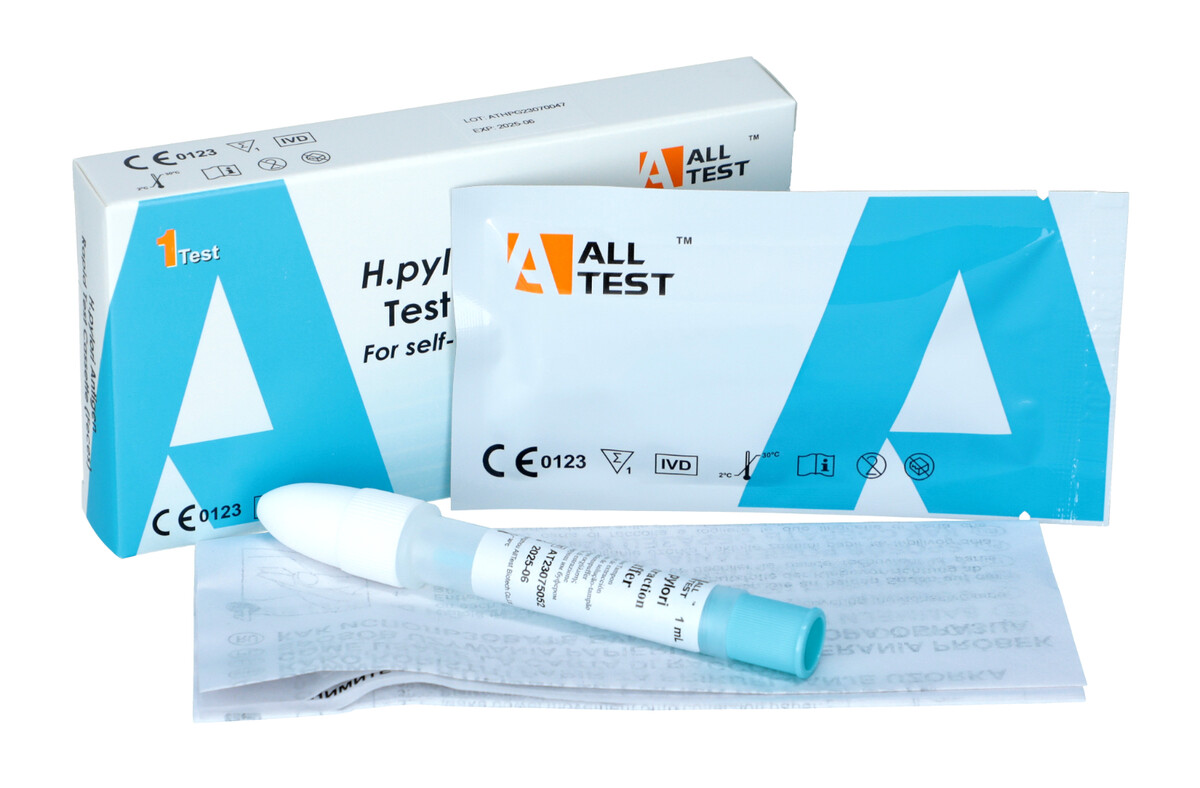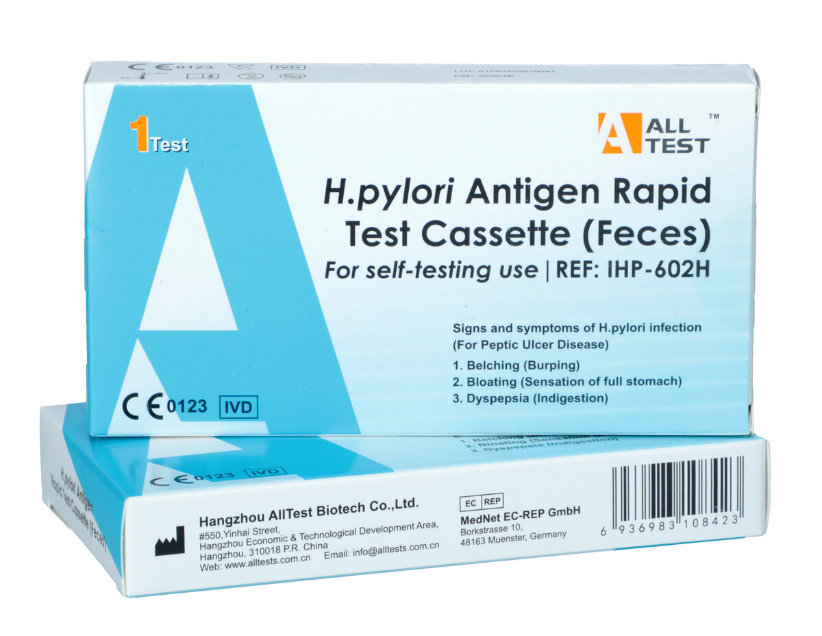 Kit de testare la domiciliu pentru a detecta prezența bacteriilor H. pylori în mucoasa gastrică printr-un test de probă de scaun în decurs de 10 minute.
