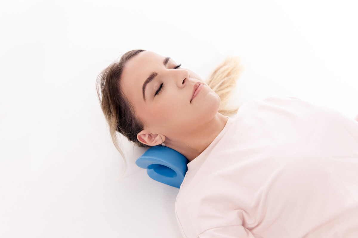 Doar întindeți-vă pe el și lăsați greutatea capului să întindă ușor mușchii umerilor de sus și partea din față a gâtului. Timpul de utilizare recomandat este de max. 8 minute.
