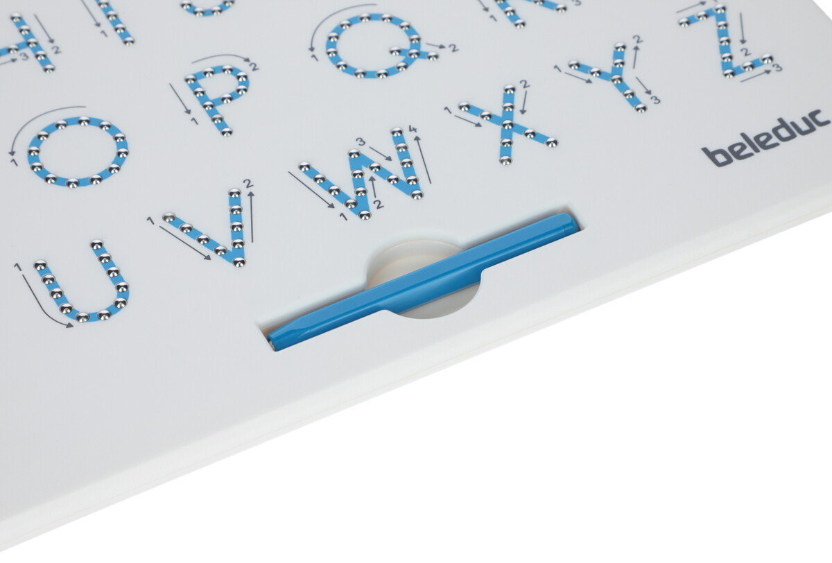Planța de desen are bile magnetice ascunse în siguranță în ea, care ajung la suprafață cu mișcarea stiloului și cad din nou înapoi cu împingerea mâinii. În jurul literelor sunt indicate mișcările și direcția modului în care copilul ar trebui să miște stiloul de-a lungul diagramei, datorită cărora el învață și noțiunile de bază ale scrisului.