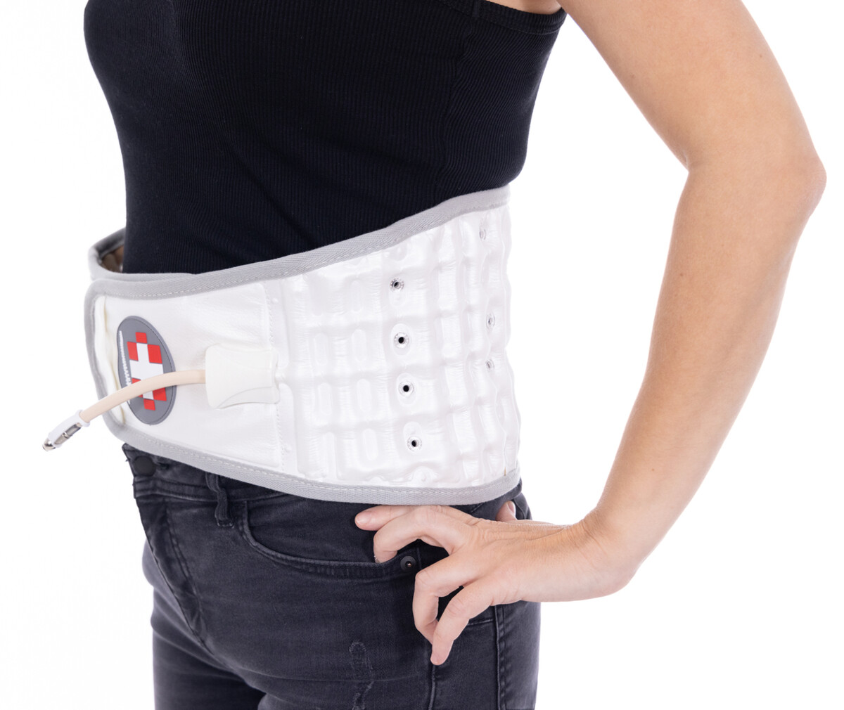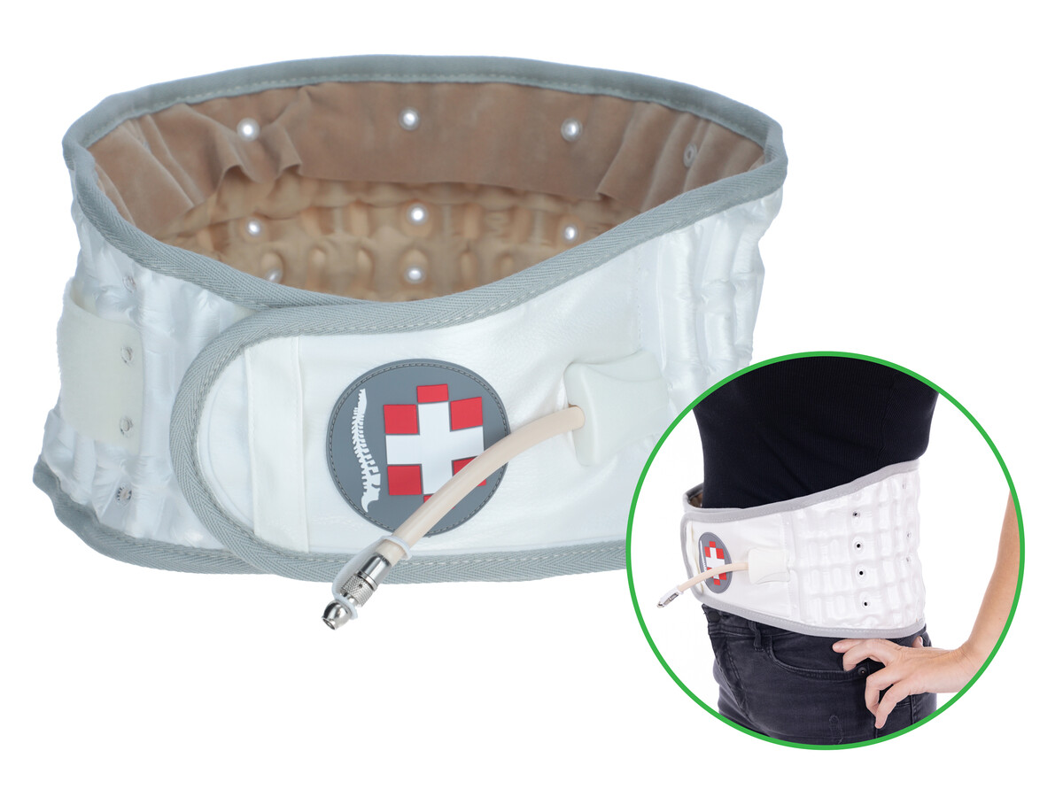 Centura lombară cu aer reduce presiunea în vertebre, ameliorând astfel durerea, oferind în același timp un tratament eficient.