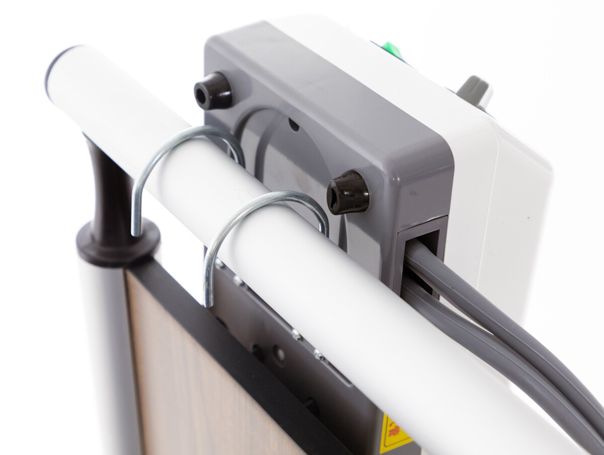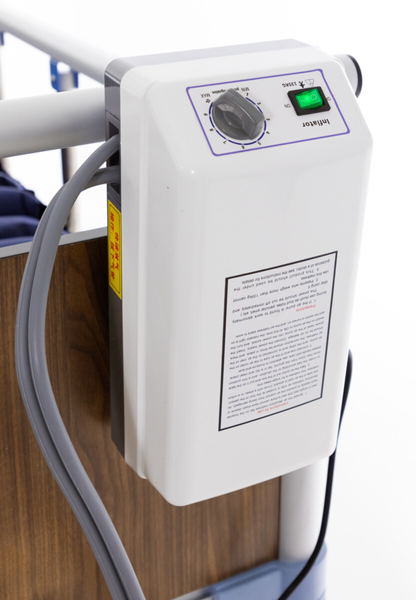 Presiunea de poziționare este reglată continuu cu ajutorul unui regulator rotativ de pe compresor care este echipat cu cârlige pentru atașarea în siguranță la pat.