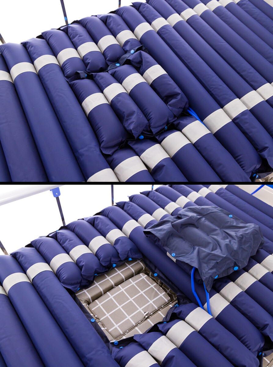 În timpul funcționării saltelei antidecubit, fiecare rând este pompat, iar restul sunt goale. După aproximativ 10 minute, situația de pompare a camerelor se schimbă.