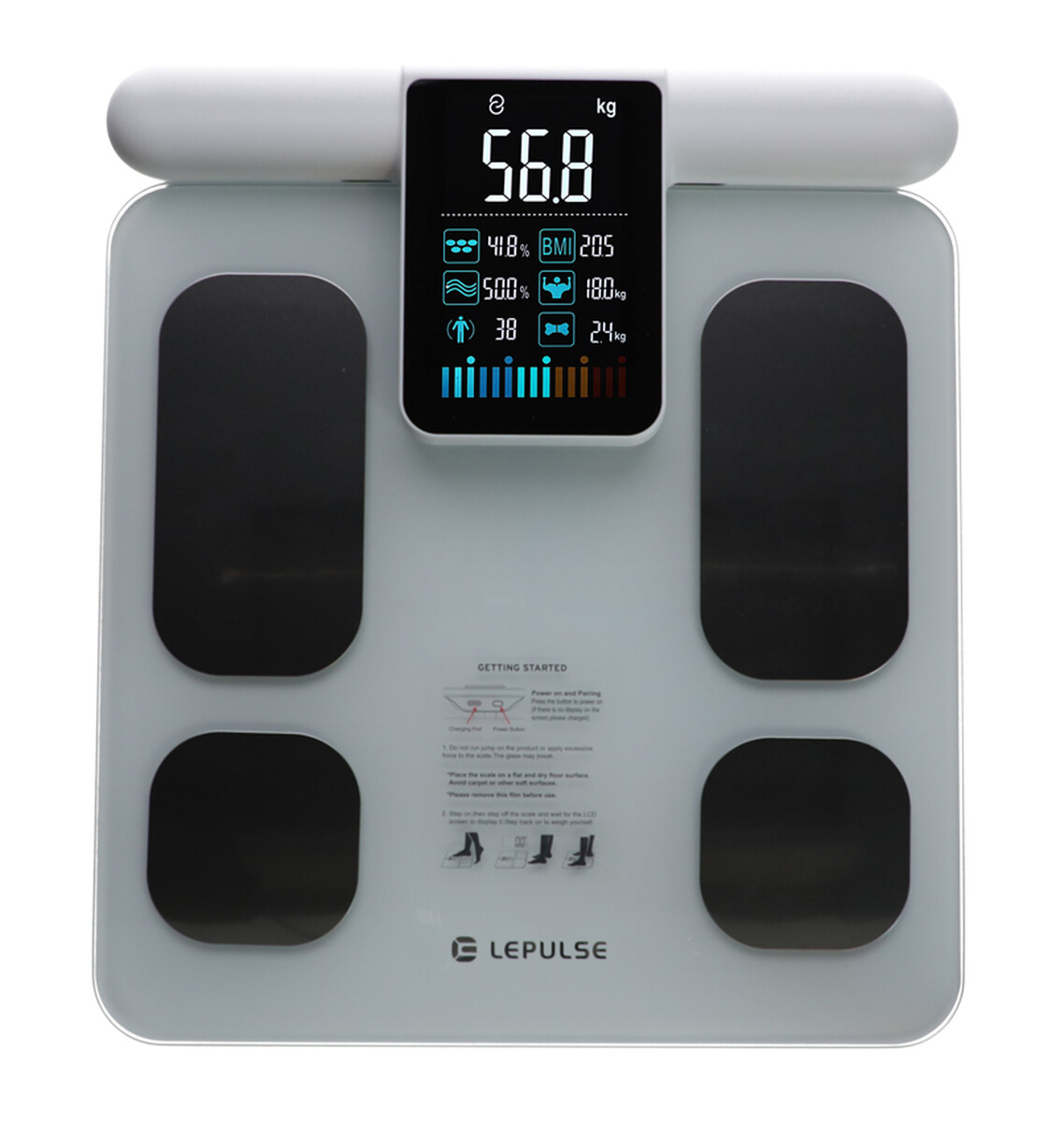 Cântarul inteligent profesional cu un afișaj LED mare direct pe mâner are hardware avansat cu un algoritm precis. Dispozitivul acceptă diagnosticarea a 20 de parametri ai corpului, care ajută la crearea unei imagini cuprinzătoare a compoziției și stării corpului dumneavoastră.