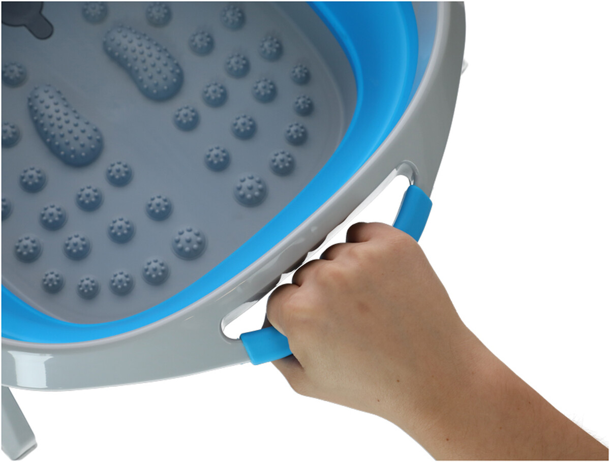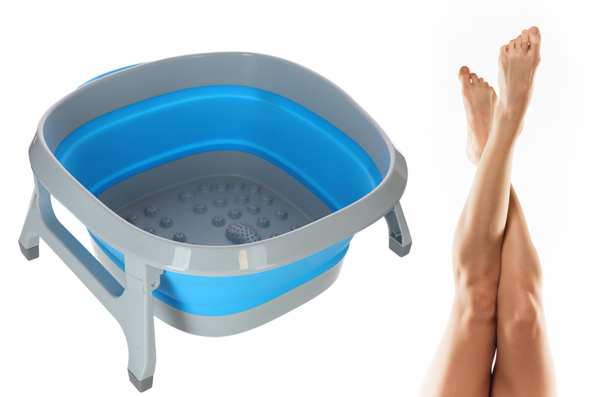 O cădiță pliabilă portabilă cu puncte de masaj care oferă spațiu pentru o baie relaxantă a picioarelor în confortul casei tale.