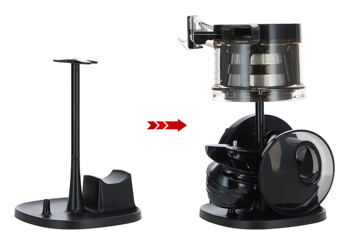 O ușoară curbură a fost încorporată în partea inferioară a structurii, ceea ce face mai ușor de transportat storcatorul. Este disponibil un suport practic care economisește spațiu pentru uscarea și depozitarea pieselor individuale.