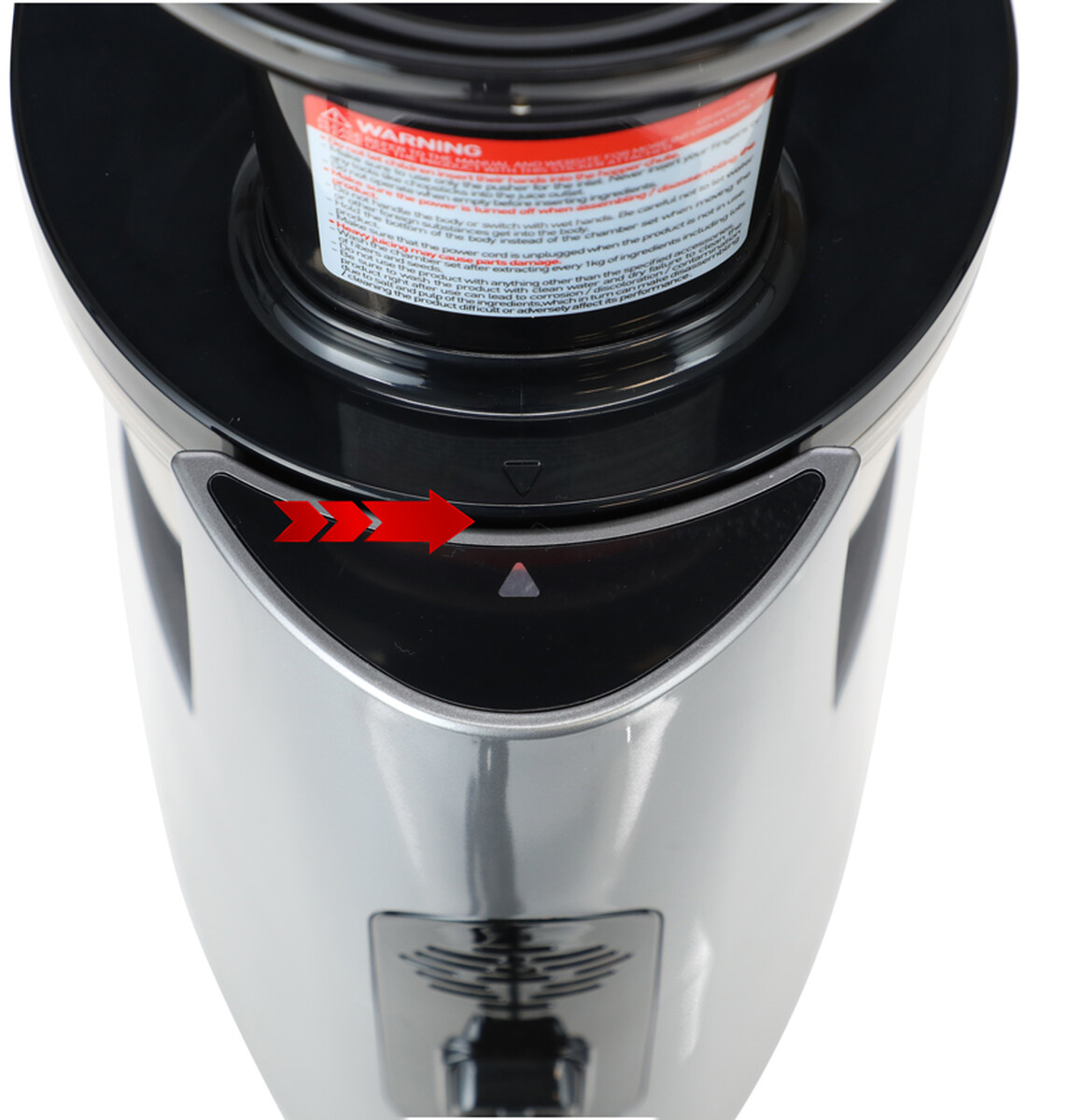Un bonus frumos este modul de curățare automată, care vă permite să clătiți rezervorul între smulgerea diferitelor tipuri de materii prime. Nu trebuie să scoateți camera, doar închideți orificiul de evacuare a sucului, turnați apă în ea și porniți storcătorul pentru câteva secunde. Apa va trece prin întregul sistem de stoarcere și o va curăța rapid.
