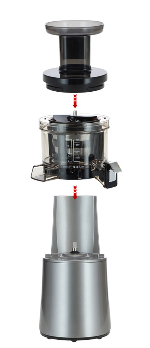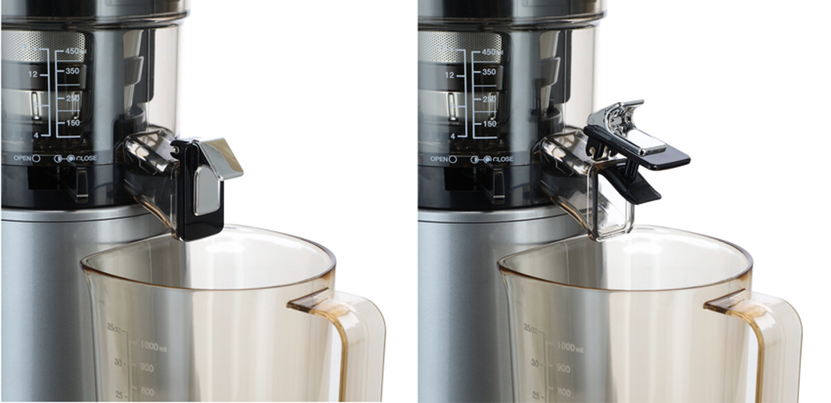 Cu storcătorul Hurom H-AA, puteți prepara cu ușurință sucuri proaspete de fructe și legume încărcate cu nutrienți naturali. O strecurătoare fină din oțel inoxidabil va servi pentru un suc perfect fin, una grosieră pentru un smoothie mai gros. Datorită unei mici pârghii suplimentare, puteți regla de asemenea, furnizarea de pulpă a băuturii cu suc.