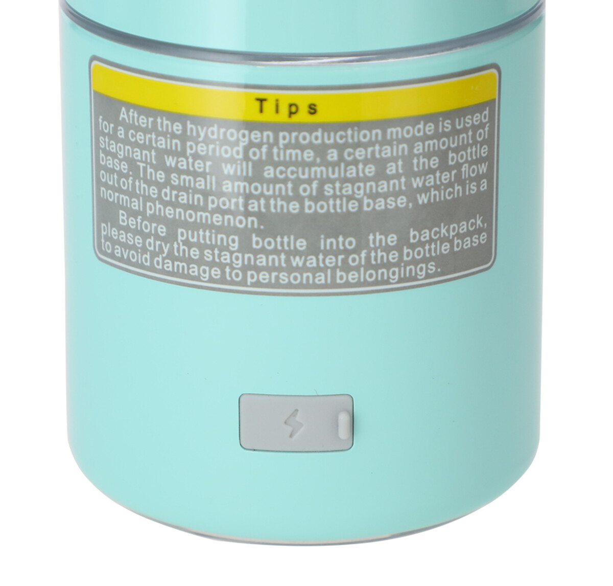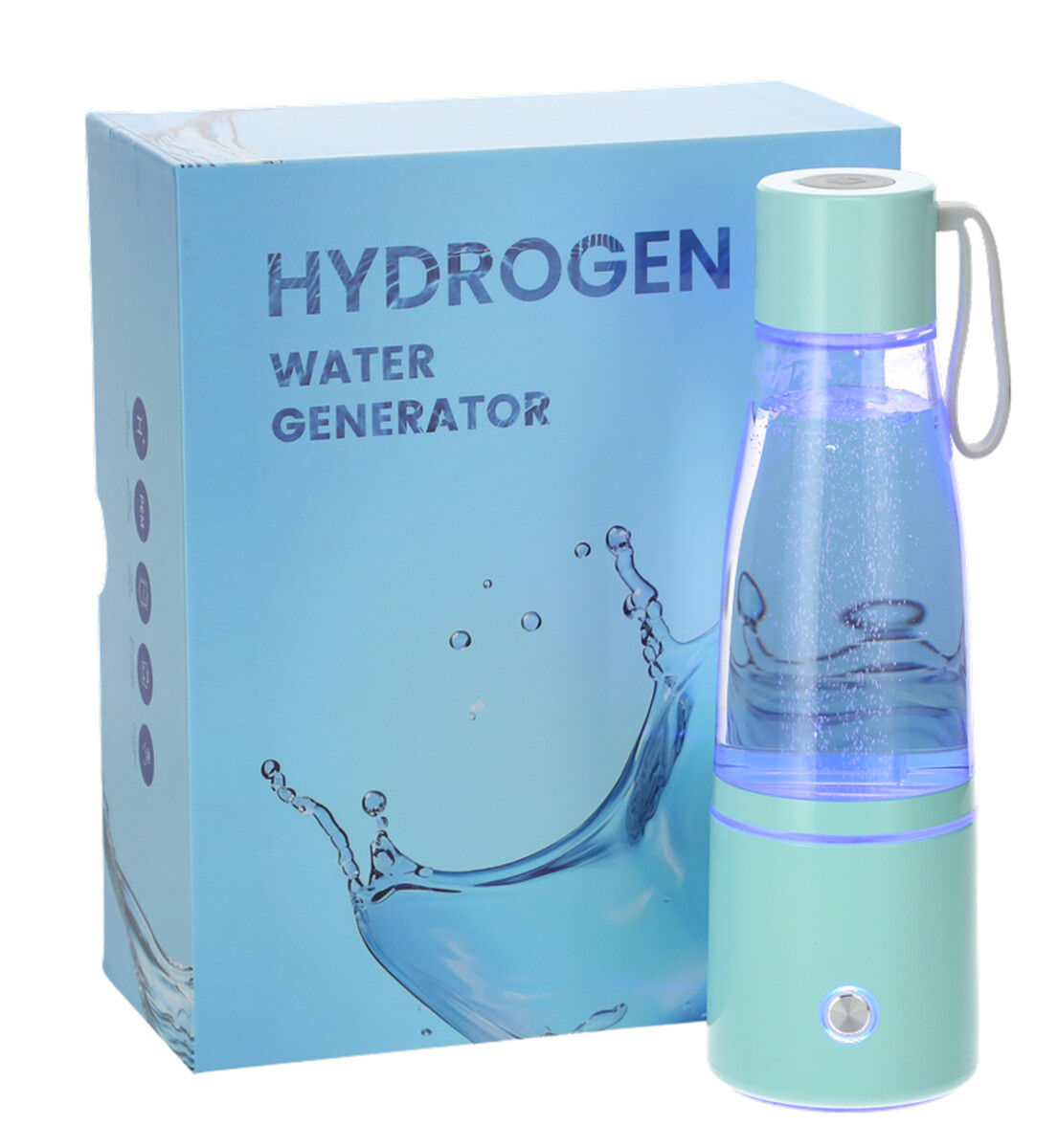 Doar umpleți sticla cu lichid, înșurubați-o, începeți procesul de producție, iar în câteva minute apa cu hidrogen este gata de băut direct din sticlă. Există, de asemenea, un capac cu o curea de silicon, cu care puteți lua în mod convenabil băutura pregătită cu dvs.