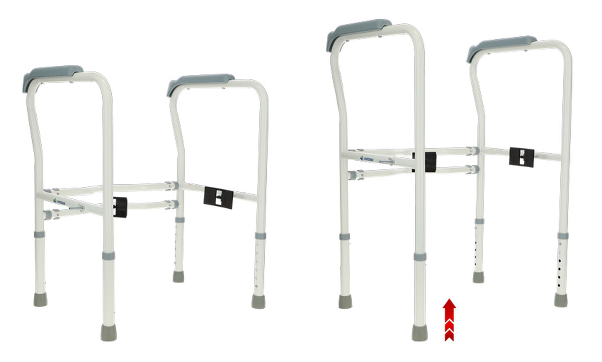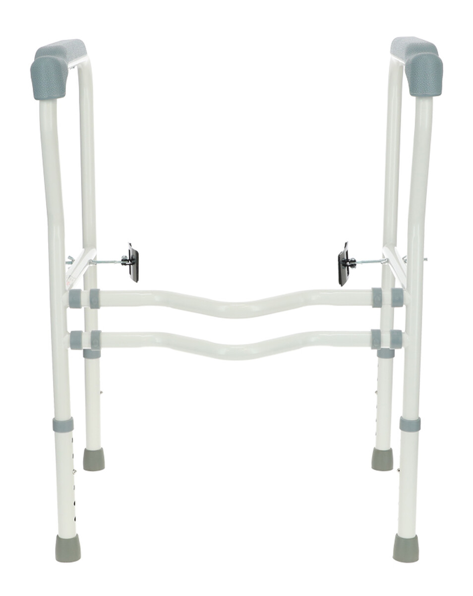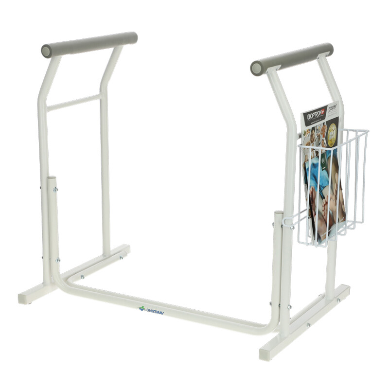 Suportul de toaletă UNIZDRAV are un design practic care economisește spațiu și oferă suficient spațiu pentru picioare. Mânerele antiderapante oferă o prindere confortabilă și siguranță la fiecare mișcare. Construcția solidă din metal poate suporta sarcini de până la 100 kg. Bineînțeles există extensii de cauciuc pe picioare pentru a asigura stabilitatea pe diverse tipuri de suprafețe.