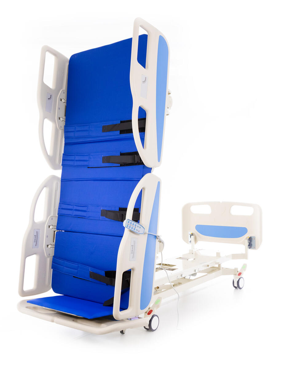 Pat medical reglabil cu baterie de rezervă și o funcție unică de verticalizare care permite o tranziție ușoară și sigură de la culcat la stat în picioare.