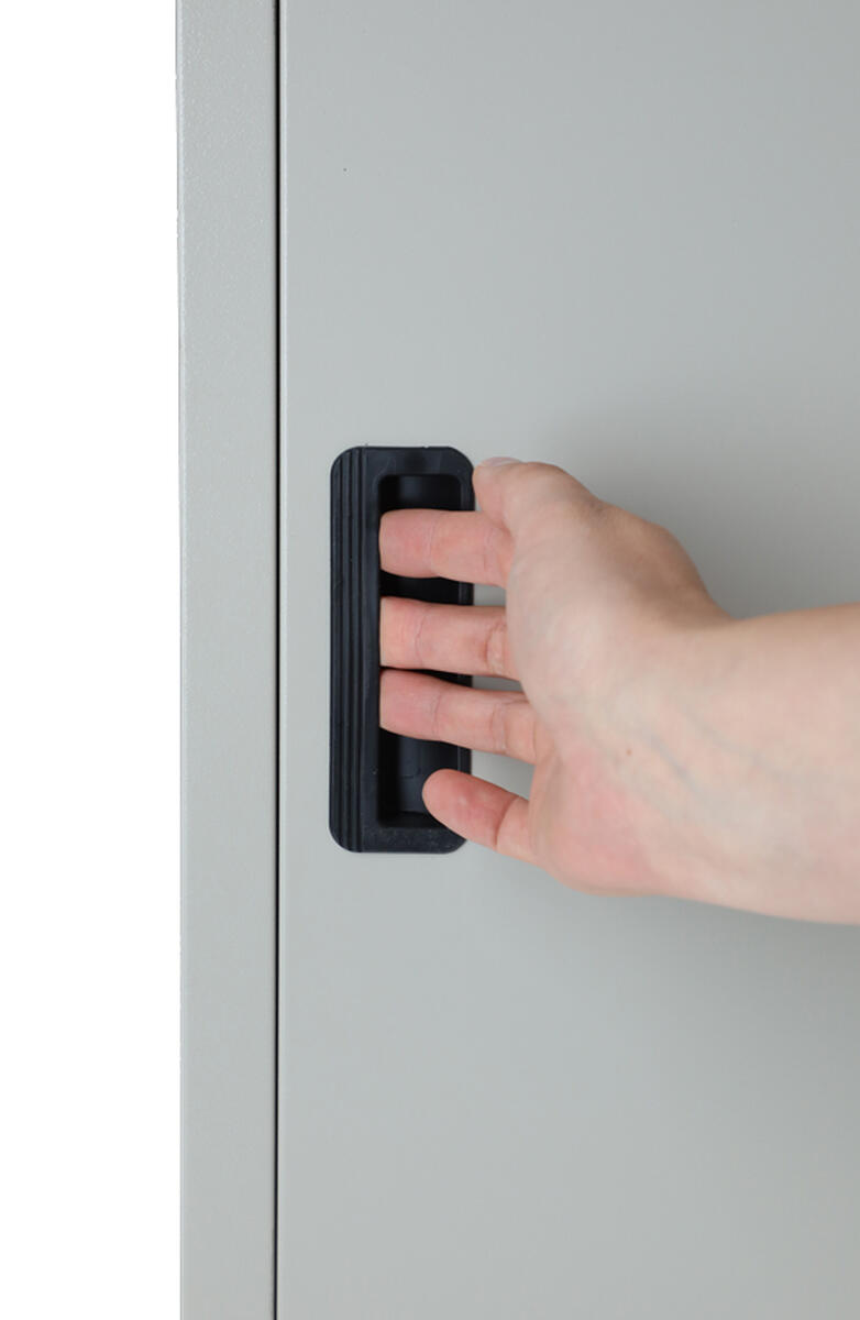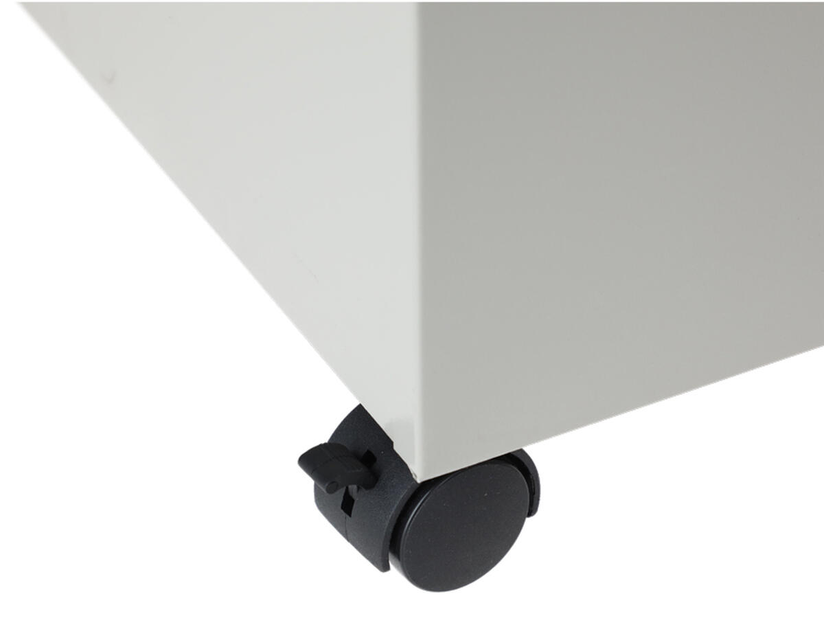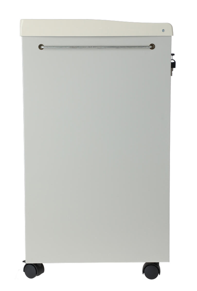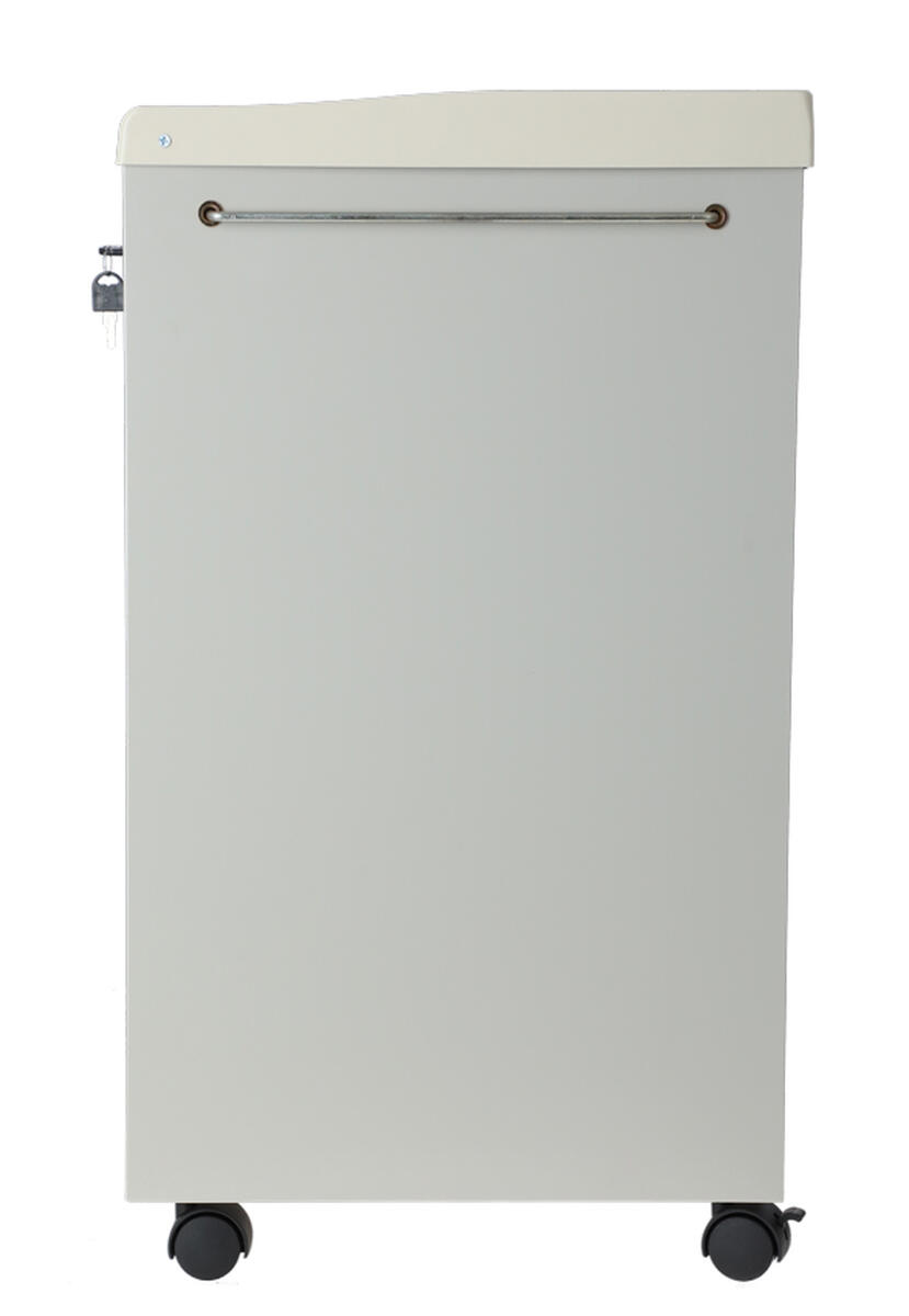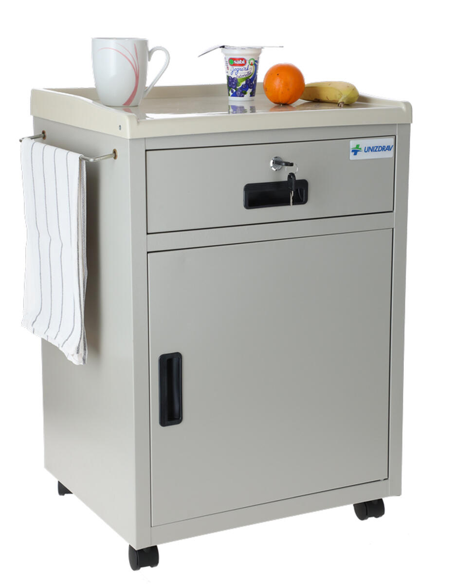 Noptiera include un sertar cu încuietoare și un dulap spațios cu raft unde puteți depozita tot ce aveți nevoie, de la echipamente de lucru și medicamente până la obiecte personale. Zona de depozitare superioară este completată de margini ridicate care ajută la prevenirea căderii obiectelor. În plus, pe ambele părți ale dulapului există umerașe practice care pot fi folosite pentru a agăța un prosop de mână sau alte obiecte mai ușoare.