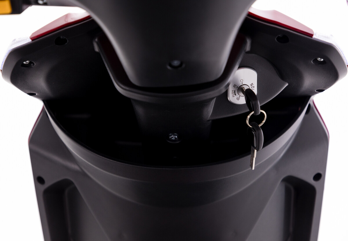 Scuterul electric cu două locuri CHAMPION DUO este livrat în stare asamblată - trebuie atașate doar oglinzile retrovizoare.