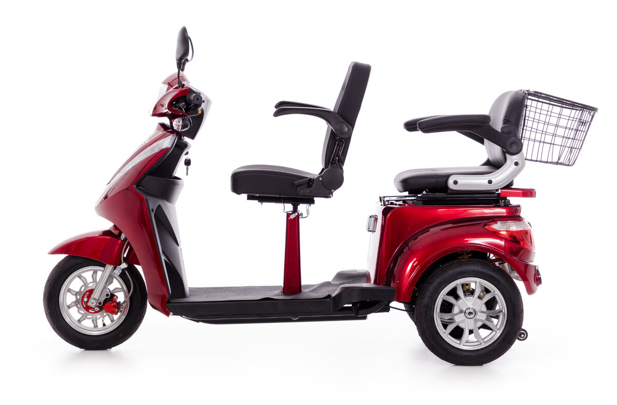 Scuter de lux cu două locuri de cea mai înaltă clasă destinată seniorilor, pacienților imobili sau persoanelor cu mobilitate redusă. Potrivit pentru cuplurile de seniori, de asemenea pentru trasee mai lungi și diferite terenuri, oferă confort și siguranță maxim în timpul conducerii.