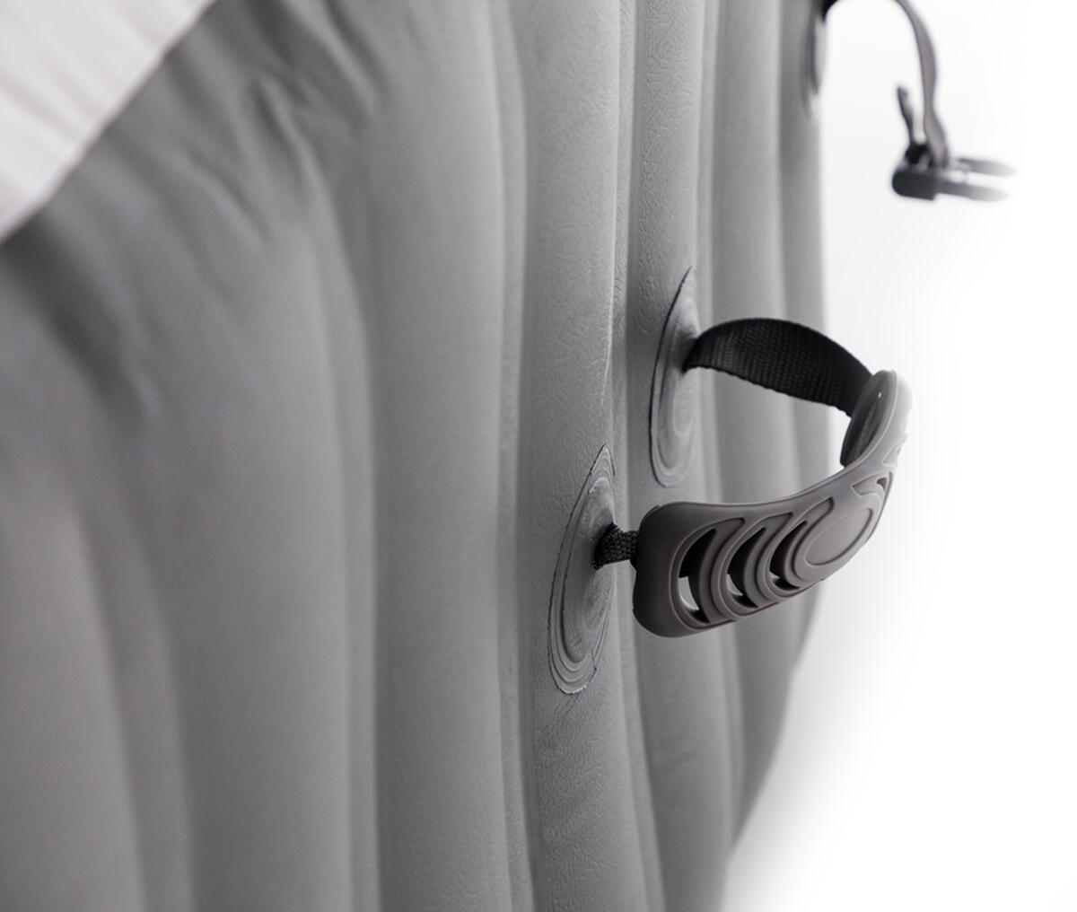 Jacuzzi cu hidromasaj gonflabil cu încălzire rapidă a apei și 130 de jeturi de masaj, ideală pentru relaxare pe tot parcursul anului în grădină, pe terasă și în interior.