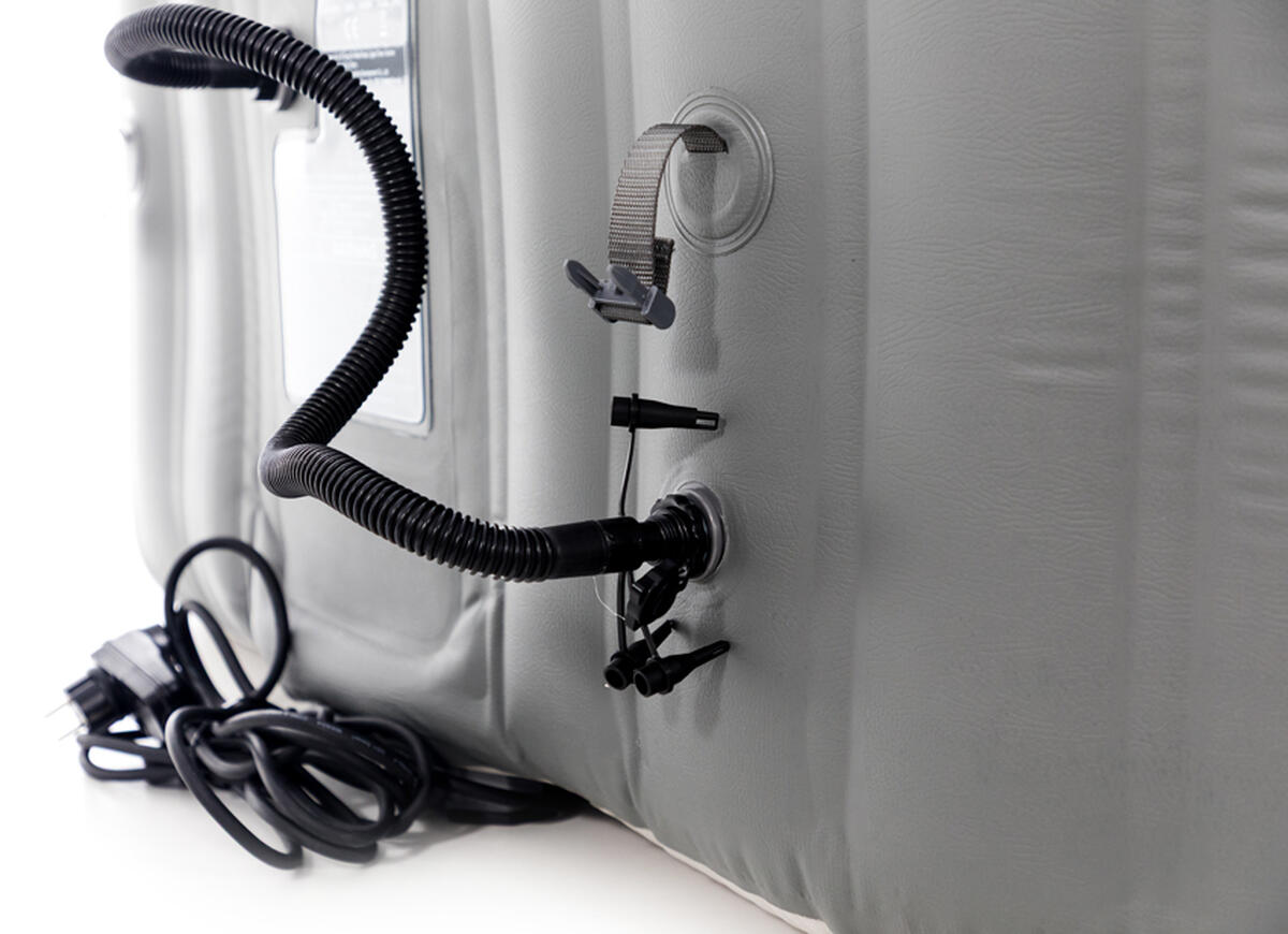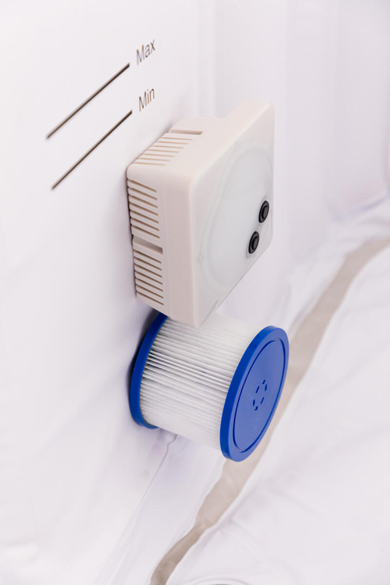 Jacuzzi cu hidromasaj gonflabil UNIZDRAV se distinge prin greutatea redusă și manevrarea ușoară. Pentru a o umfla, pur și simplu apăsați butonul BUBBLE și va fi gata de umplere în câteva minute. După terminarea sezonului, o puteți dezumfla, plia și depozita cu ușurință. Dar o puteți folosi și iarna - trebuie doar să o mutați într-o zonă cu temperatură controlată și să mențineți temperatura minimă recomandată pentru utilizare (peste 4 °C).