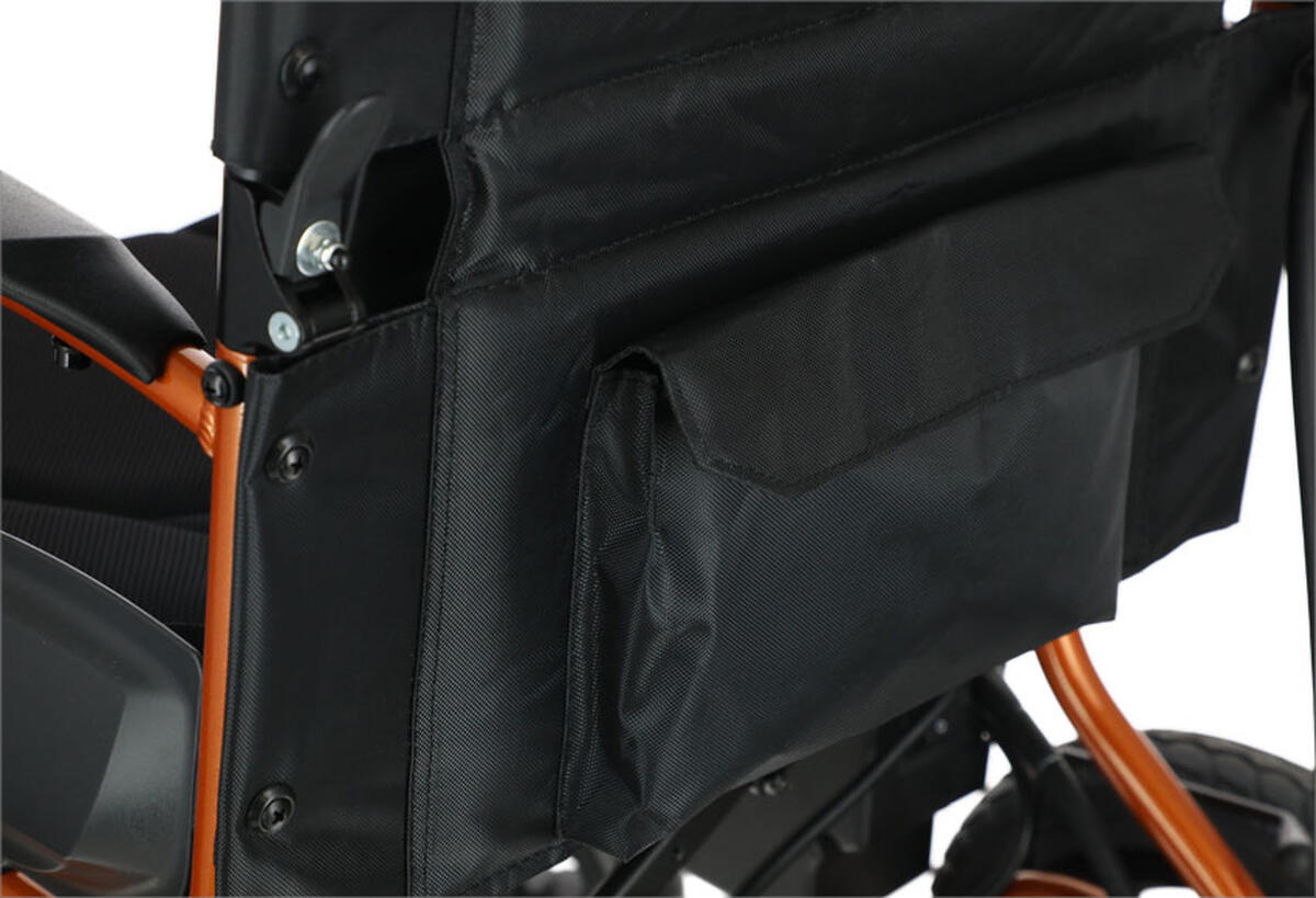 Un șezut și un spătar confortabile și respirabile sporesc confortul pacientului. În spatele spătarului se află un buzunar practic de depozitare cu velcro.