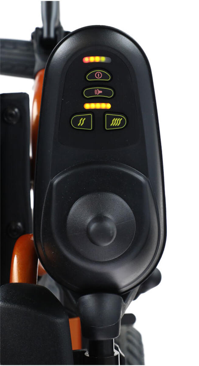 Funcționarea scaunului cu rotile electric este simplă și intuitivă. Modulul de control încorporat - joystick-ul cu indicator luminos al modului selectat și al stării bateriei - asigură un control lin înainte, înapoi și lateral. Există 5 niveluri de viteză din care puteți alege, cu ajutorul cărora utilizatorul poate adapta mersul la starea sa de sănătate și la condițiile actuale ale terenului. În plus, joystick-ul poate fi plasat pe partea dreaptă sau stângă. Dacă este necesar, este posibilă și selectarea modului manual pentru persoana însoțitoare.