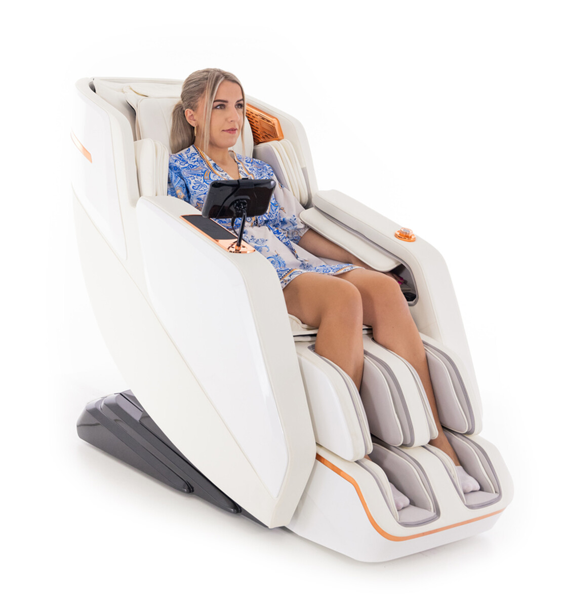 Scaunul oferă un masaj reflex realist pe o lungime totală de până la 140 cm folosind un cap de masaj robotizat 3D cu 4 puncte de contact care acoperă mai multe părți ale corpului simultan, cum ar fi gâtul, umerii (trapez), spatele, zona lombară, fesele și coapsele.