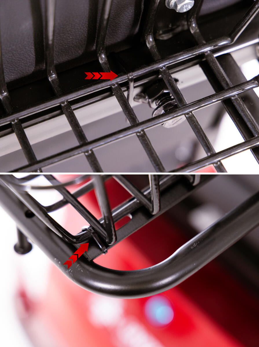 Suportul este alcătuit dintr-o structură solidă și un suport. Structura se montează pur și simplu pe spatele scuterului, pe cutie/coș, iar suportul în sine se împinge apoi pur și simplu în aceasta la distanța dorită.