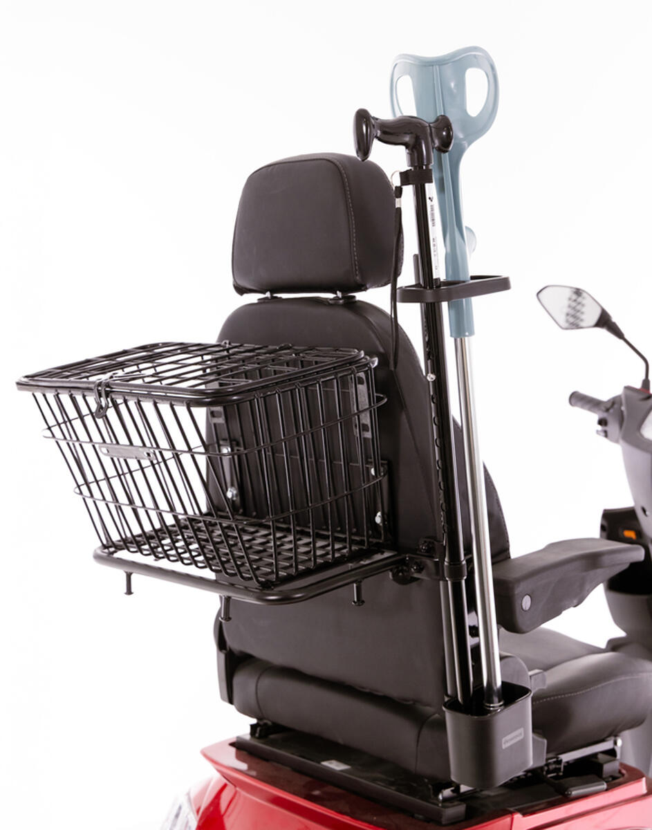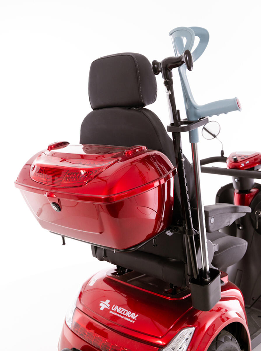 Suportul suplimentar pentru cârjă și baston a fost special conceput pentru anumite scutere electrice din gama noastră. Suportul vă permite să transportați în mod convenabil și sigur dispozitivele de suport, astfel încât acestea să nu interfereze cu mersul și să nu vă afecteze confortul.