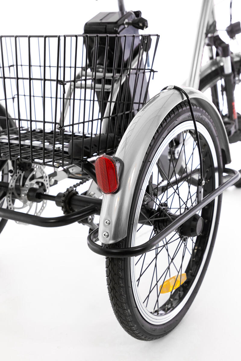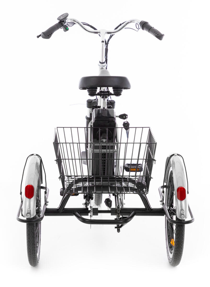 O tricicletă practică și ușor de utilizat pentru seniori, cu o unitate electrică suplimentară și mult spațiu de depozitare