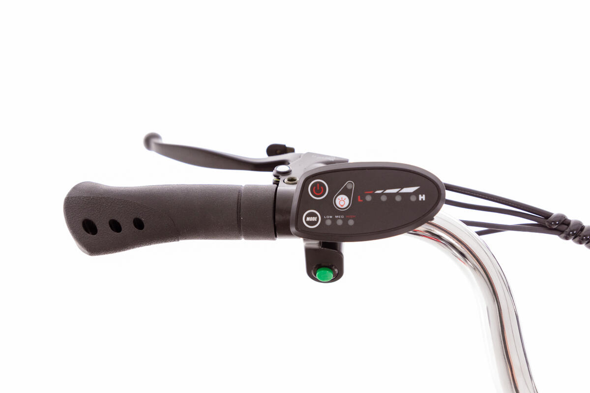 Tricicleta este ușor de controlat folosind un controler rotativ și un panou de control cu semnale luminoase. Pe unitatea de control transparentă veți găsi: