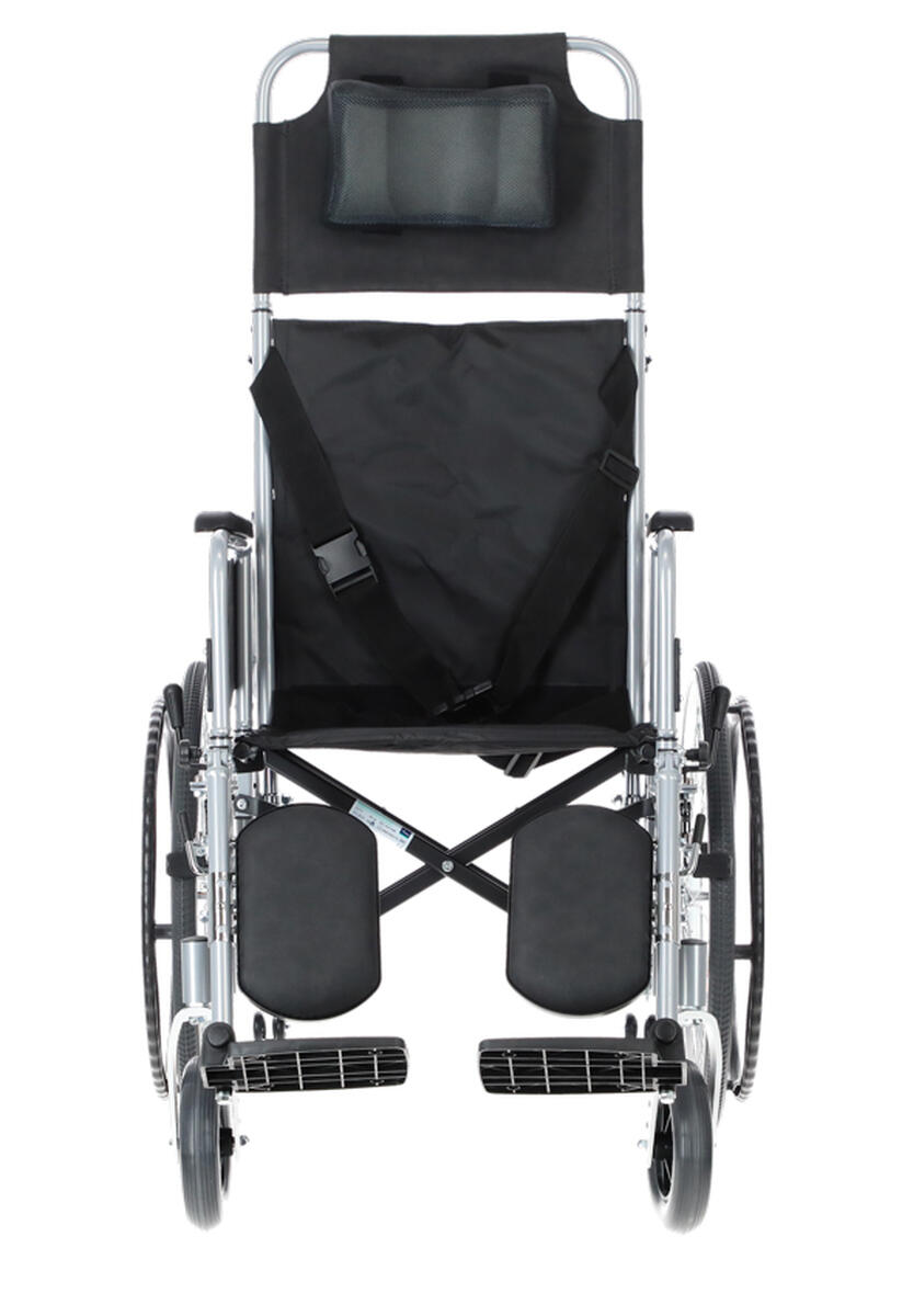 Scaunul rulant este echipat cu o funcție de poziționare a spătarului care vă permite să reglați unghiul spătarului în intervalul 0 – 90° și să îl setați într-o poziție complet orizontală. Suporturile pentru picioare pot fi reglate simultan în unghi și, de asemenea, lateral.