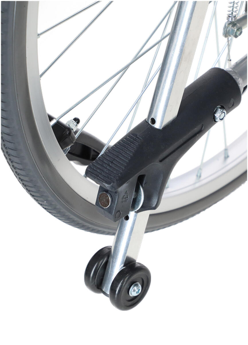 Roțile din față sunt fără cameră, la fel ca și roțile din spate, care sunt echipate cu jante de tracțiune din plastic și frână de parcare (pe ambele părți). Există, de asemenea, roți stabilizatoare suplimentare pentru a proteja căruciorul împotriva răsturnării.