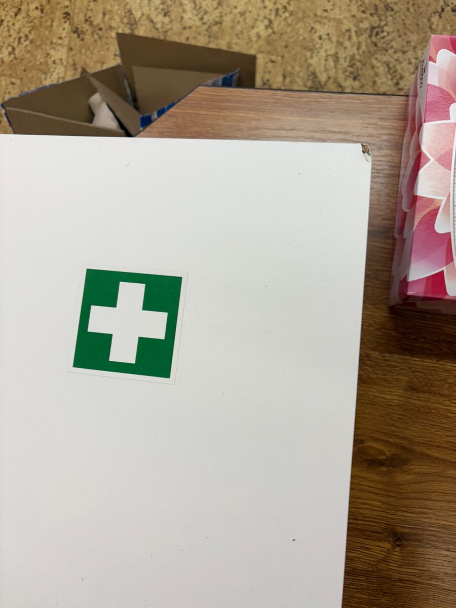 Trusă de prim ajutor din lemn suspendată- fără ustensile, albă - COLȚ DETERIORAT