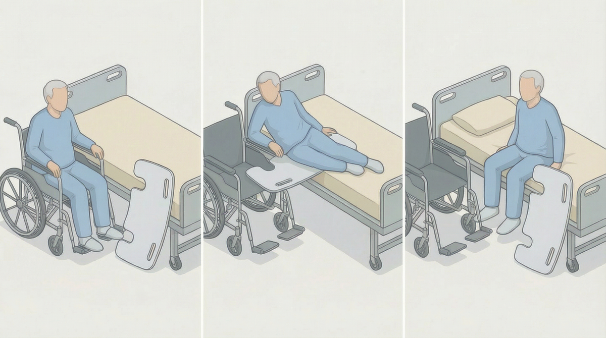 Placa de transfer cu formă ergonomică facilitează mutarea pacienților dintr-un loc în altul.